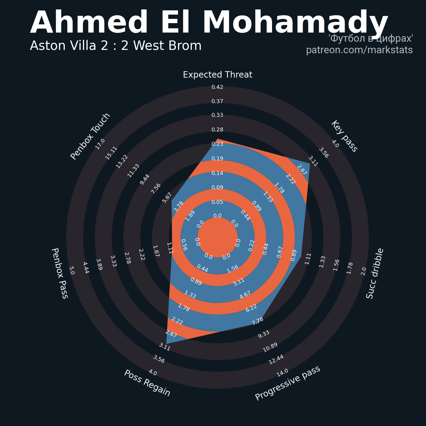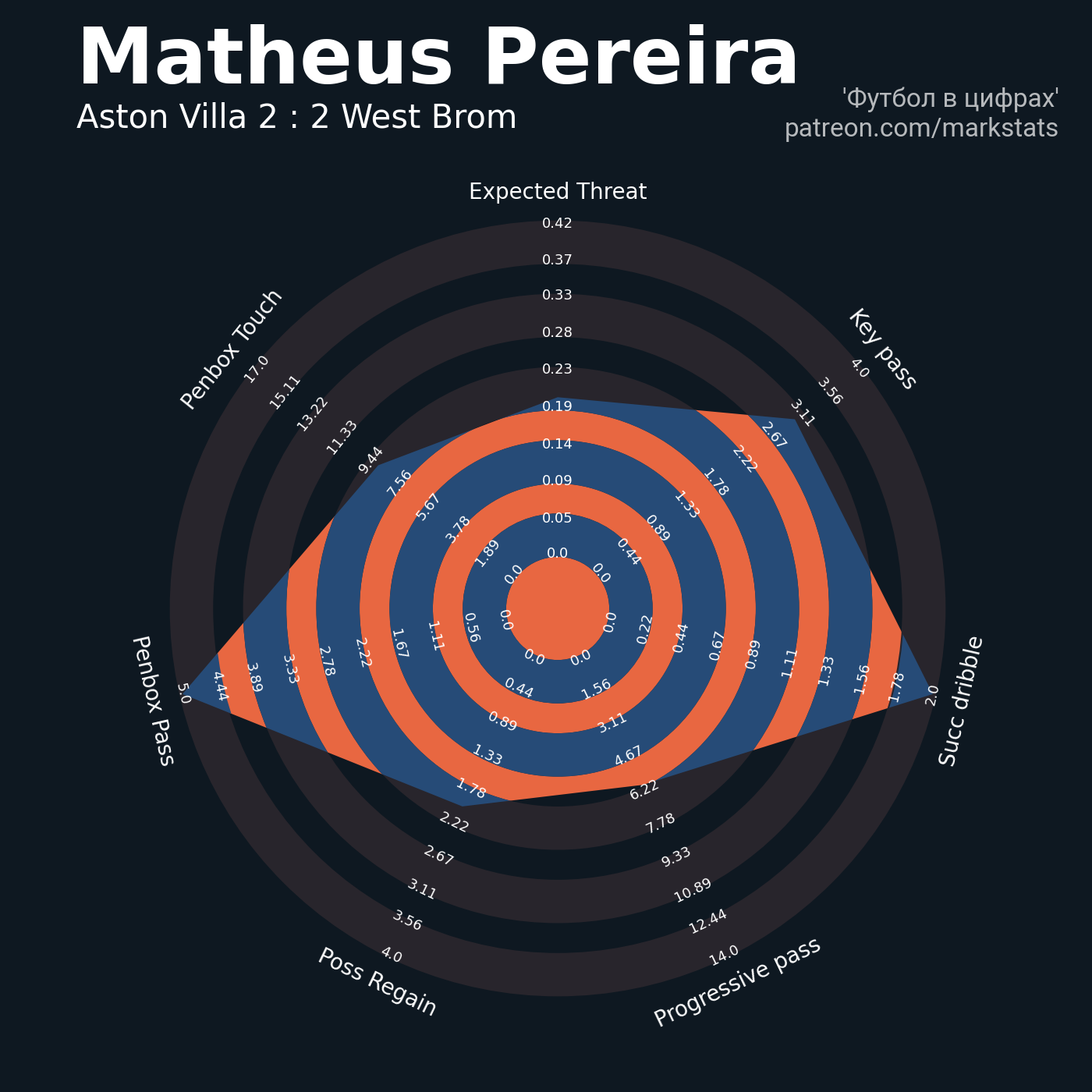 ▪ 0.42 очка xT (+0.13 со стандартов)