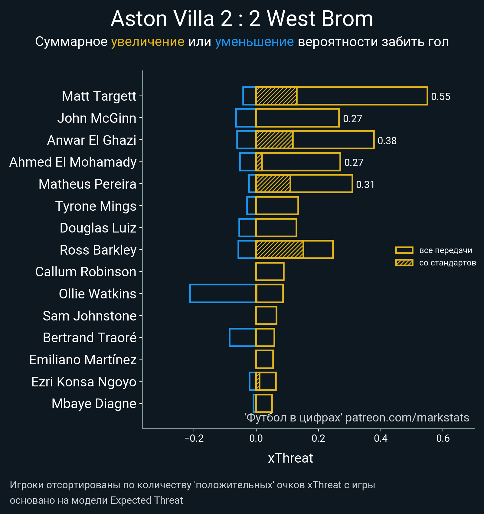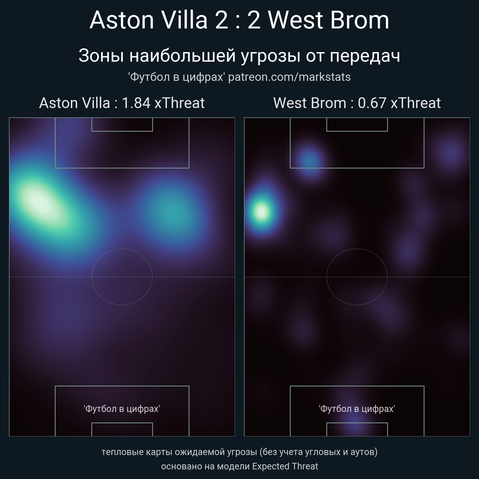 ▪ xThreat без учета угловых: 1.84 - 0.67