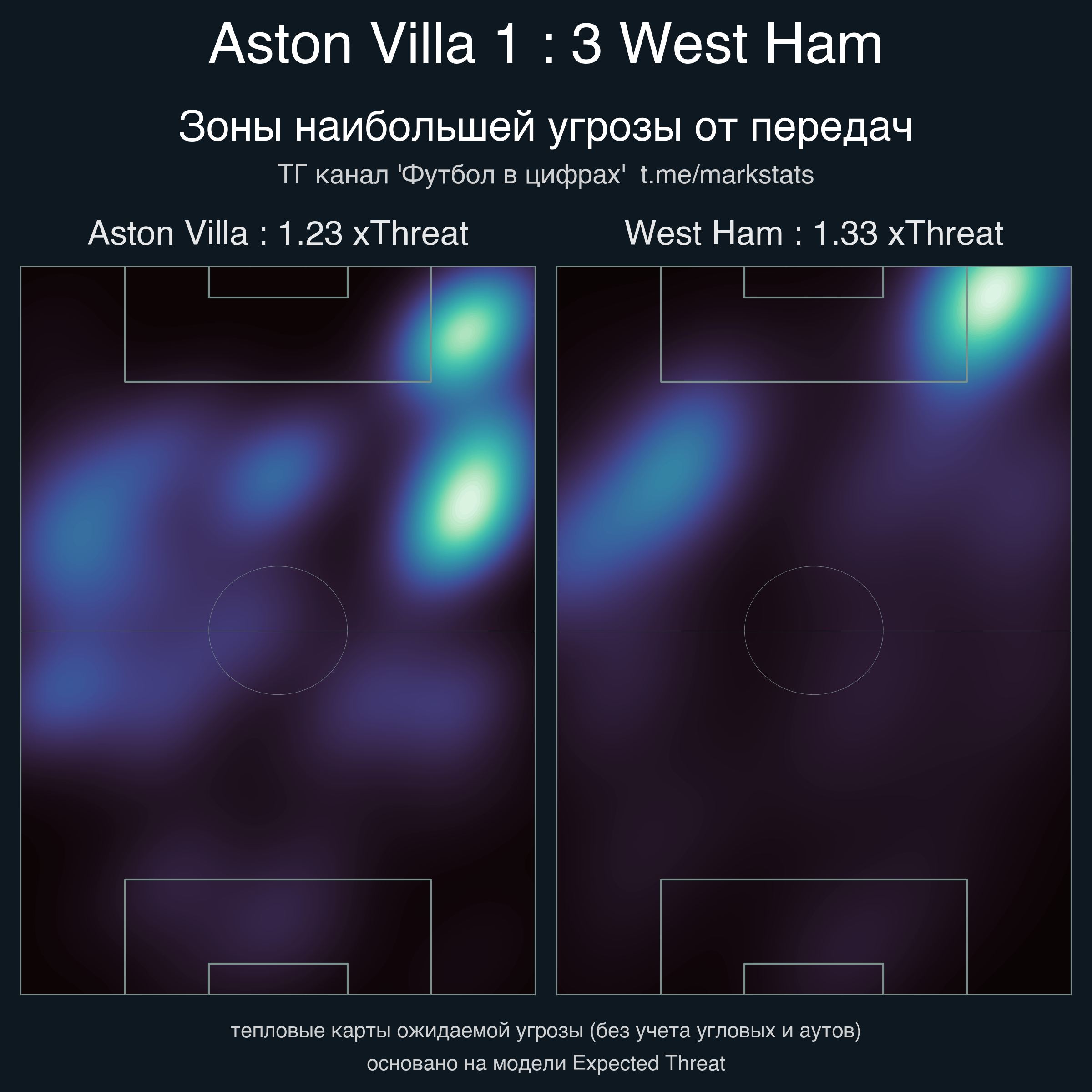 ▪ xThreat без учета угловых: 1.23 - 1.33