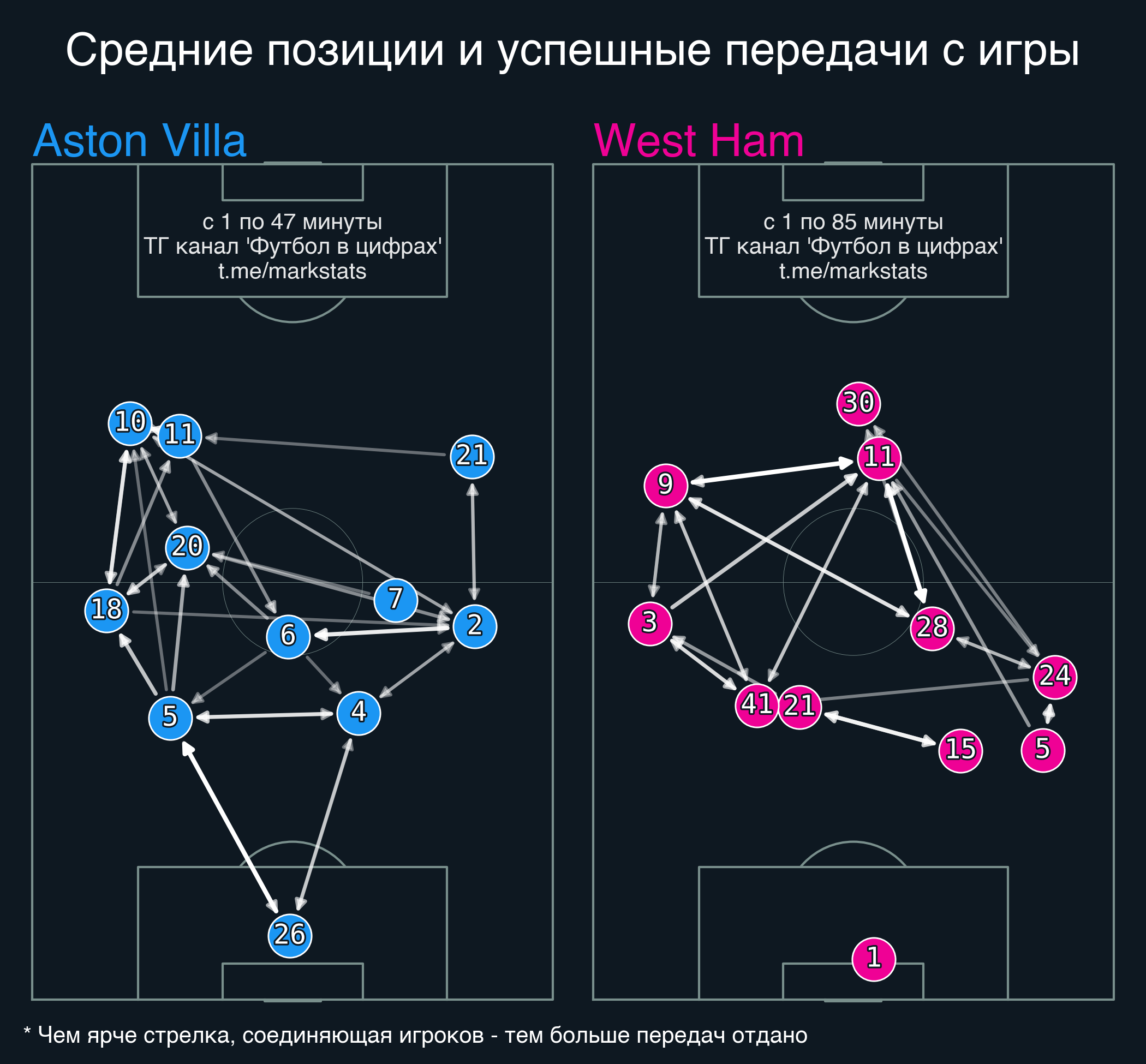 Футбол в цифрахСтатистика матча Aston Villa - West Ham
