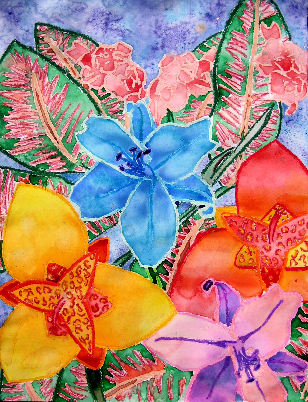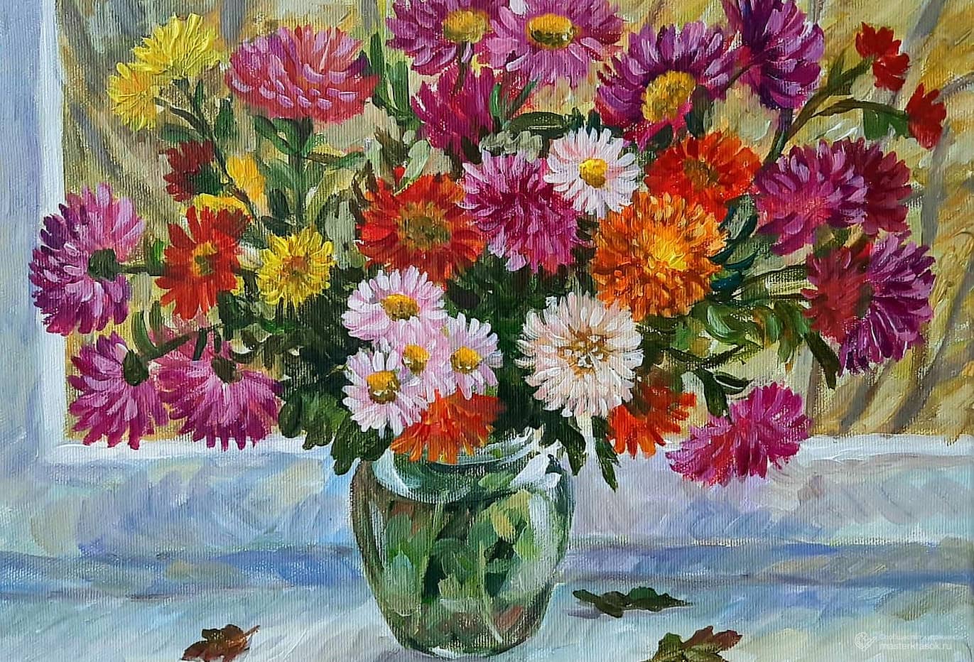 Астры восковыми мелками