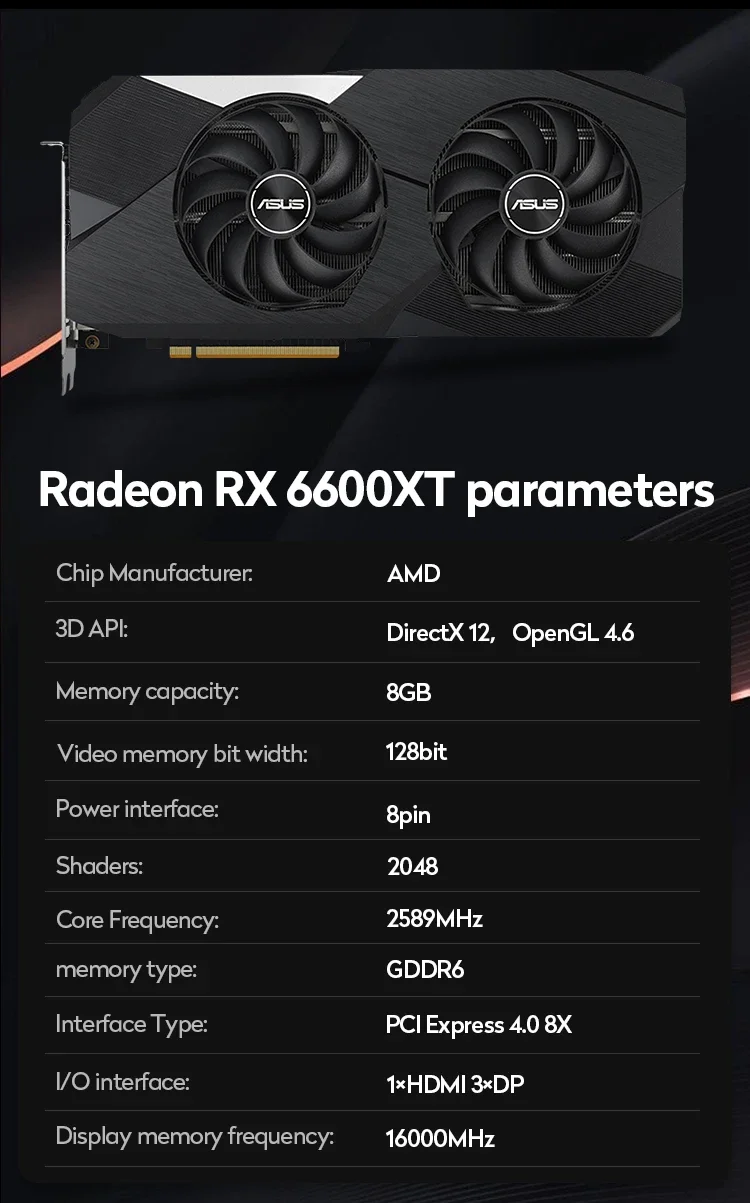 Asus DUAL-RX6600XT-O8G Radeon™ RX 6600 XT OC Edition 8GB GDDR6 Graphics Video Card - Купить с бесплатной доставкой