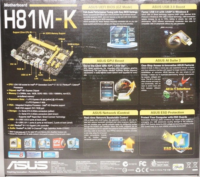 H81M-K Overview Tech Specs Review Support . . . This is in line with the ASUS vision of creating environmentally-friendly and energy-efficient products through design and innovation that reduce the carbon footprint of products and thus mitigate ecological impact .