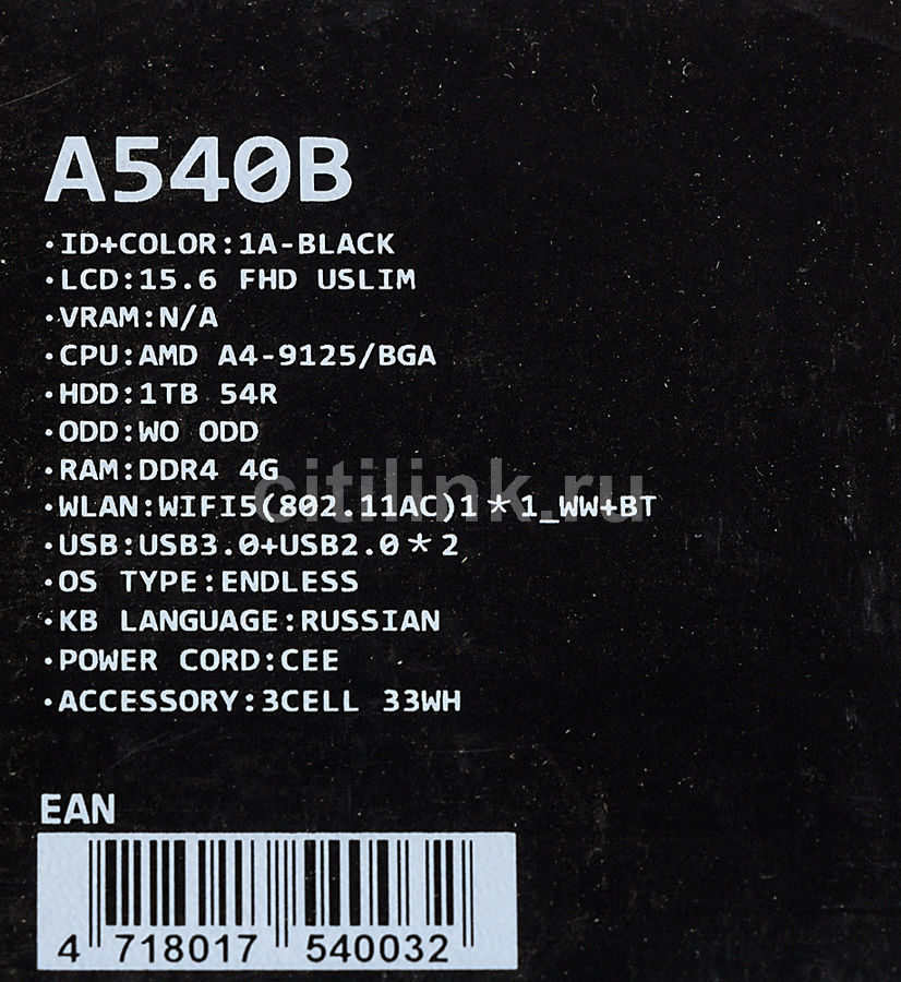 Характеристики модели 15 .6" Ноутбук ASUS K555YI (1366x768 . . .