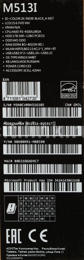 Характеристики модели 15 .6" Ноутбук ASUS VivoBook S15 S510 . . .