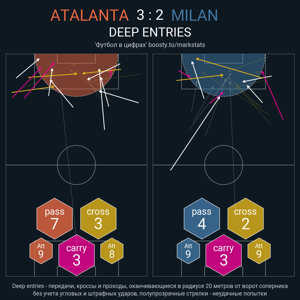 34 успешных передач из 46 попыток (1 под удар, 6 с продвижением, 3 на трети соперника)