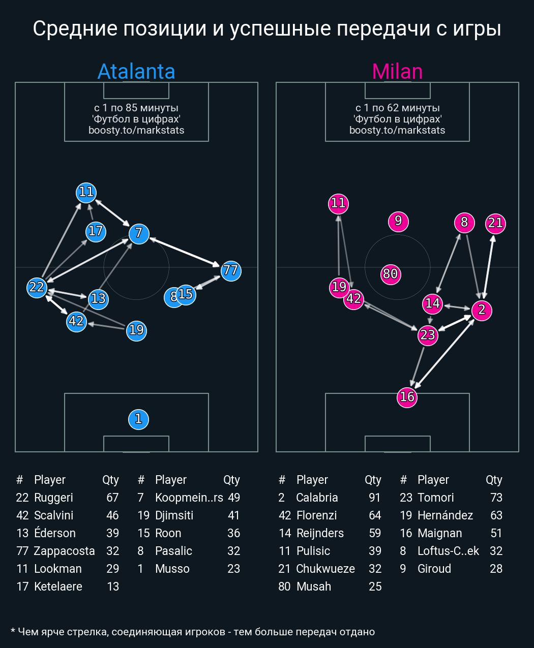 86 успешных передач из 99 попыток (11 с продвижением, 2 на трети соперника)