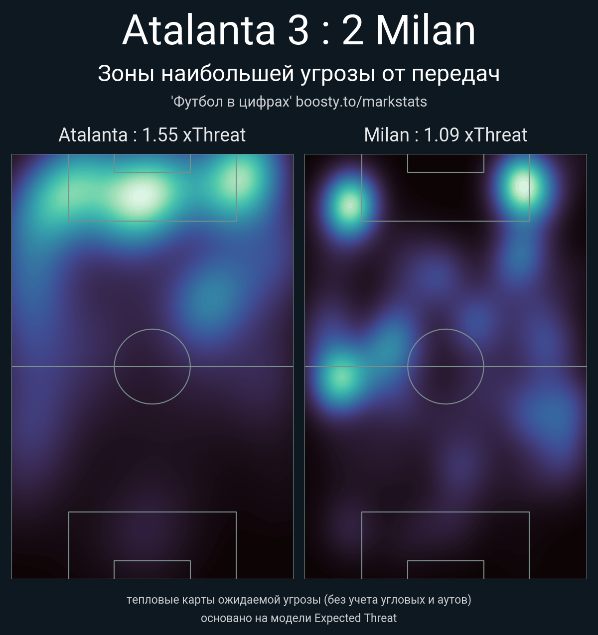 xThreat без учета угловых: 1.55 - 1.09