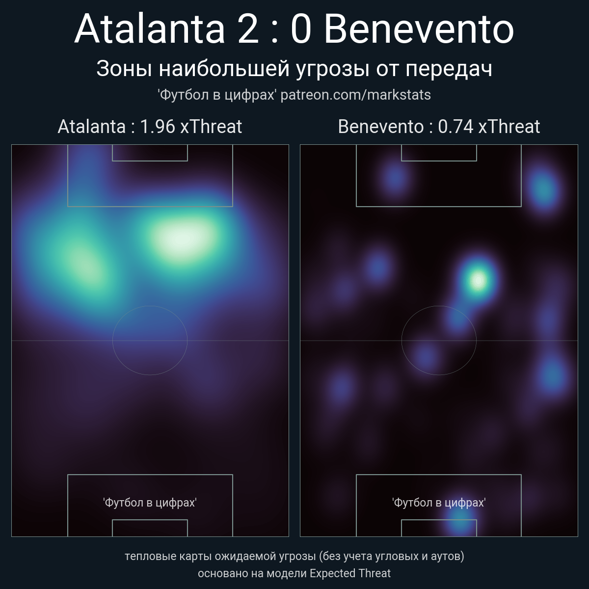 ▪ xThreat без учета угловых: 1.96 - 0.74