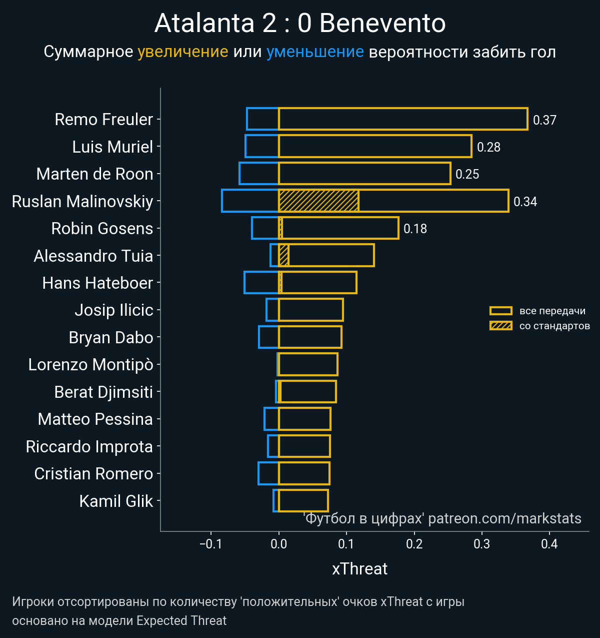 Очки xThreat с игры: