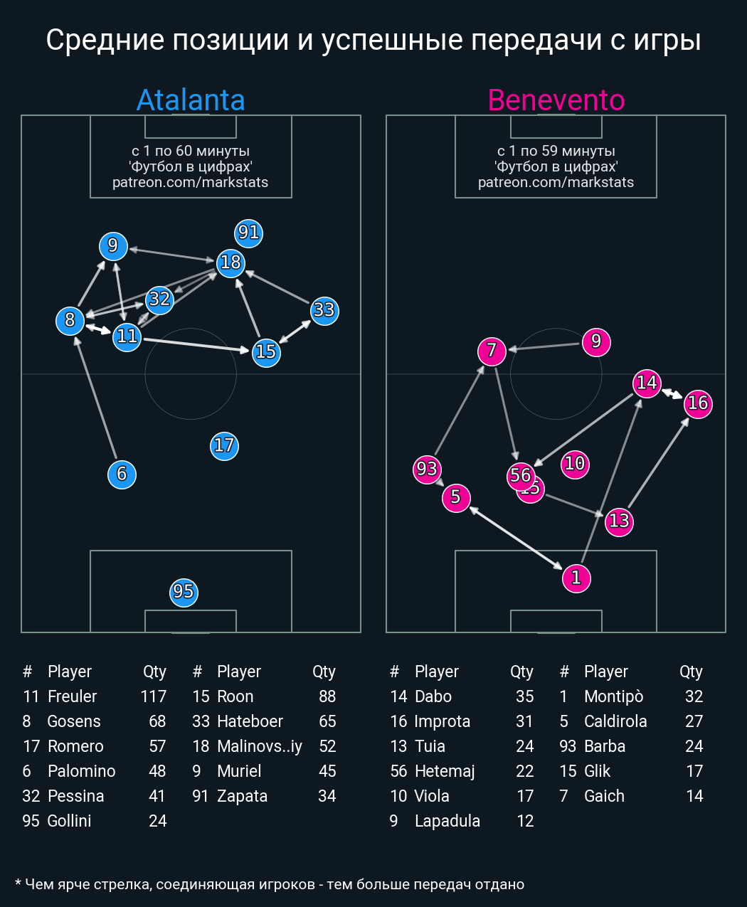 Футбол в цифрахСтатистика матча Atalanta - Benevento