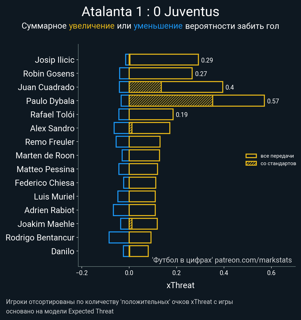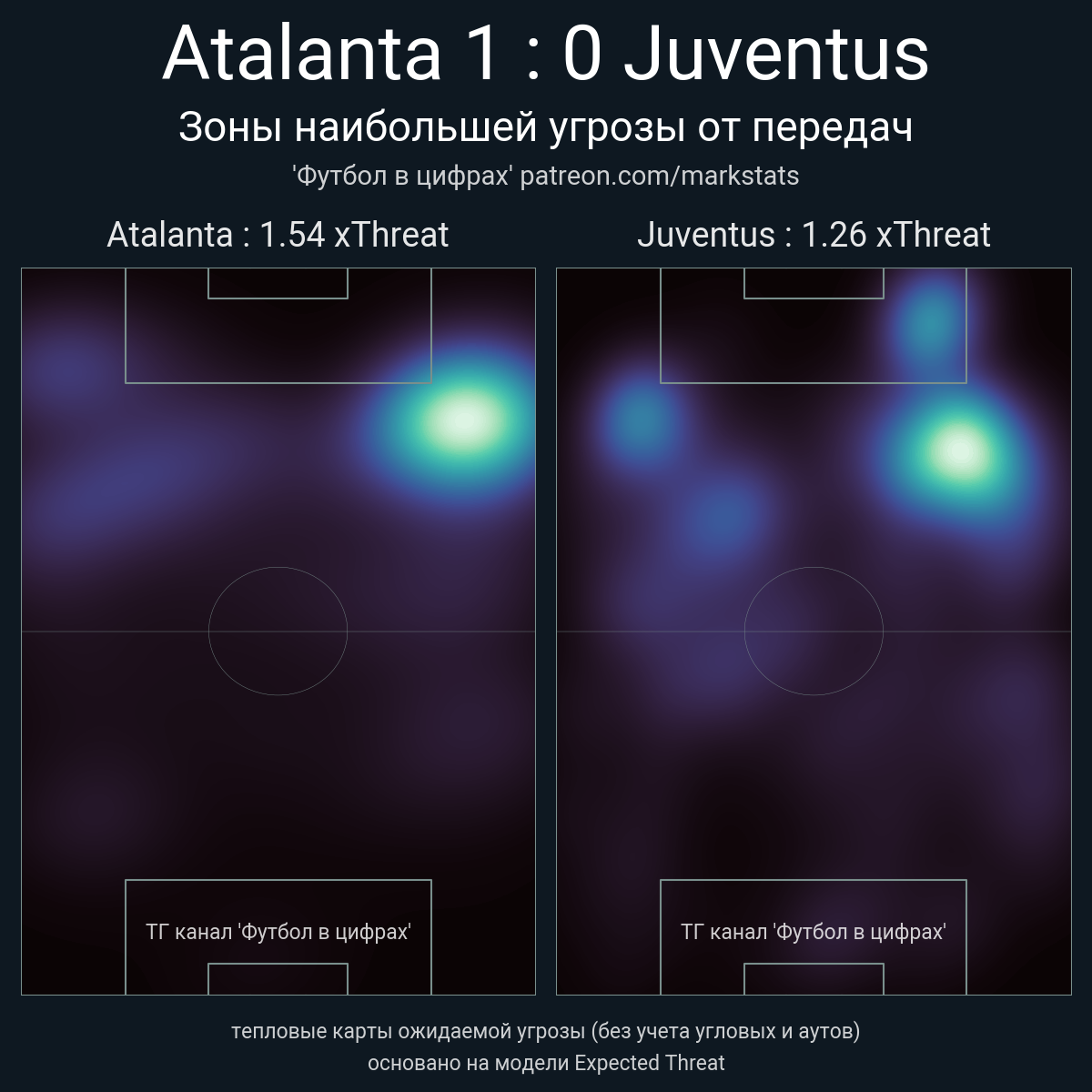 ▪ xThreat без учета угловых: 1.54 - 1.26