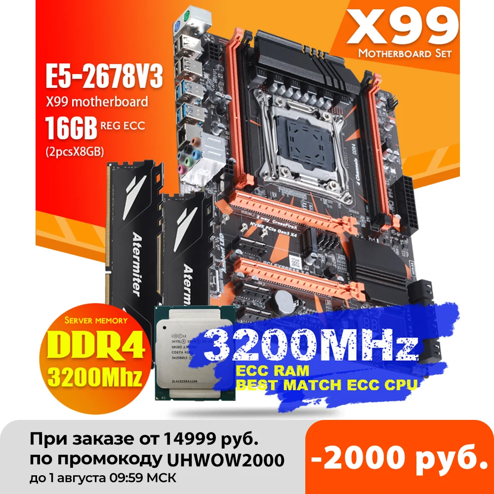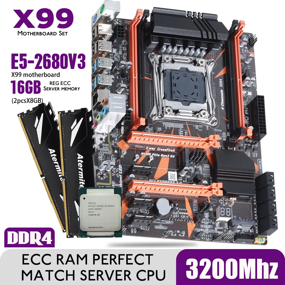 Atermiter X99 D4 DDR4 Motherboard Set . Find what this product can do . Atermiter X99 D4 DDR4 Motherboard Set with Xeon E5 2678 V3 LGA2011-3 CPU 2pcs X 8GB = 16GB 3200MHz DDR4 PC4 REG ECC RAM Memory . Because it is just exceptionally powerfull for many industrial activities (graphic design, mining, and data management) .