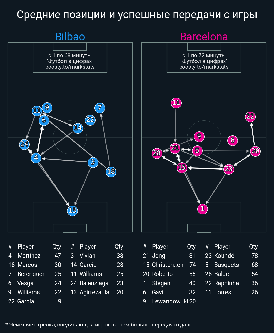 70 успешных передач из 81 попыток (1 под удар, 5 с продвижением, 5 на трети соперника)