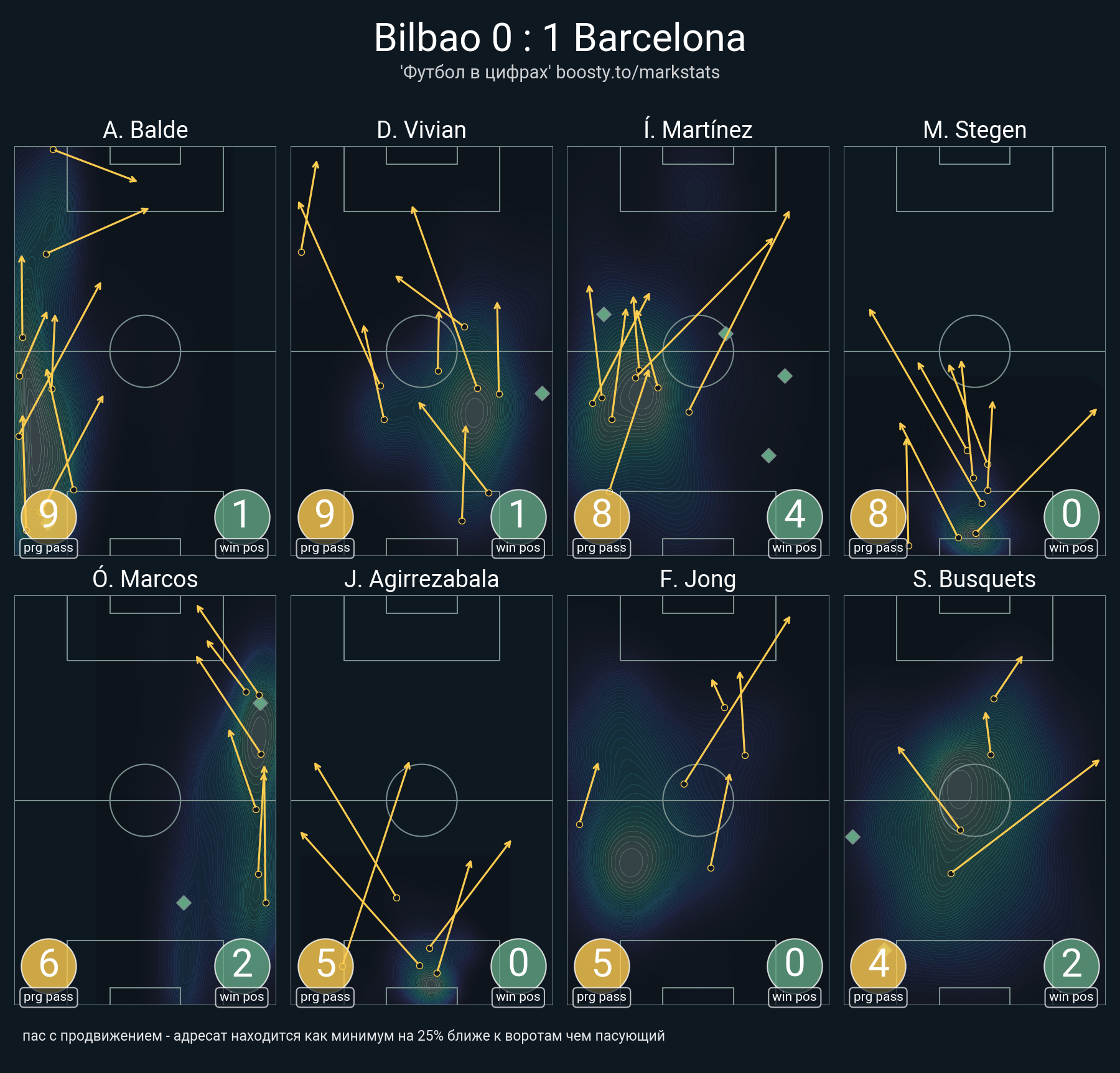 26 успешных передач из 40 попыток (1 под удар, 6 с продвижением, 5 на трети соперника)