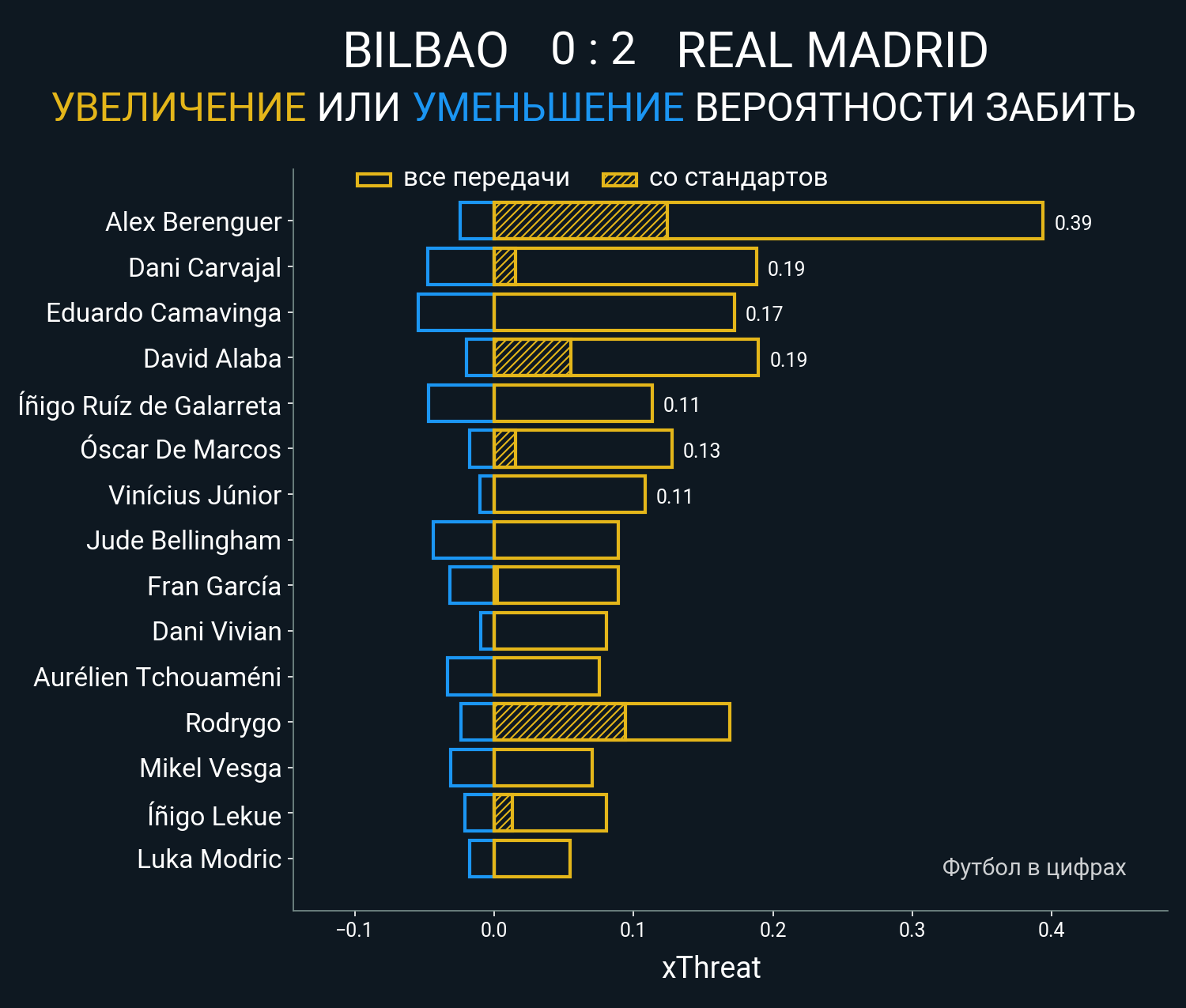 0.13 очка xT (+0.05 со стандартов)