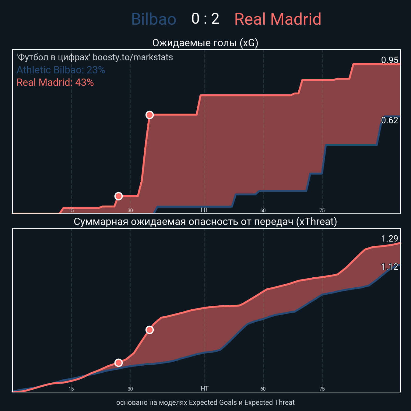 Ожидаемые голы (NPxG): 0.62 - 0.95