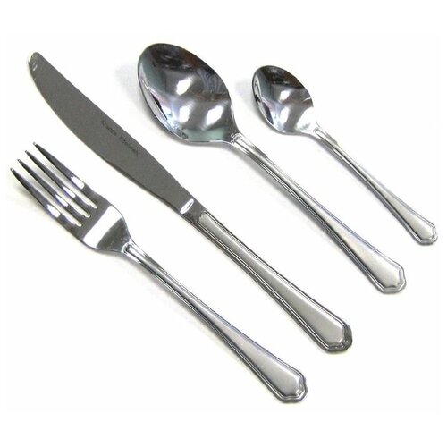 Malzeme: Paslanmaz Çelik; Kişi sayısı: 6; Setin içindekiler: Sofra bıçakları - 6 adet, yemek kaşığı - 6 adet, sofra çatalları - 6 adet, çay kaşığı - 6 adet; Renk: mat çelik; Seri: Uyum; Üretici: Atlantis, Almanya.