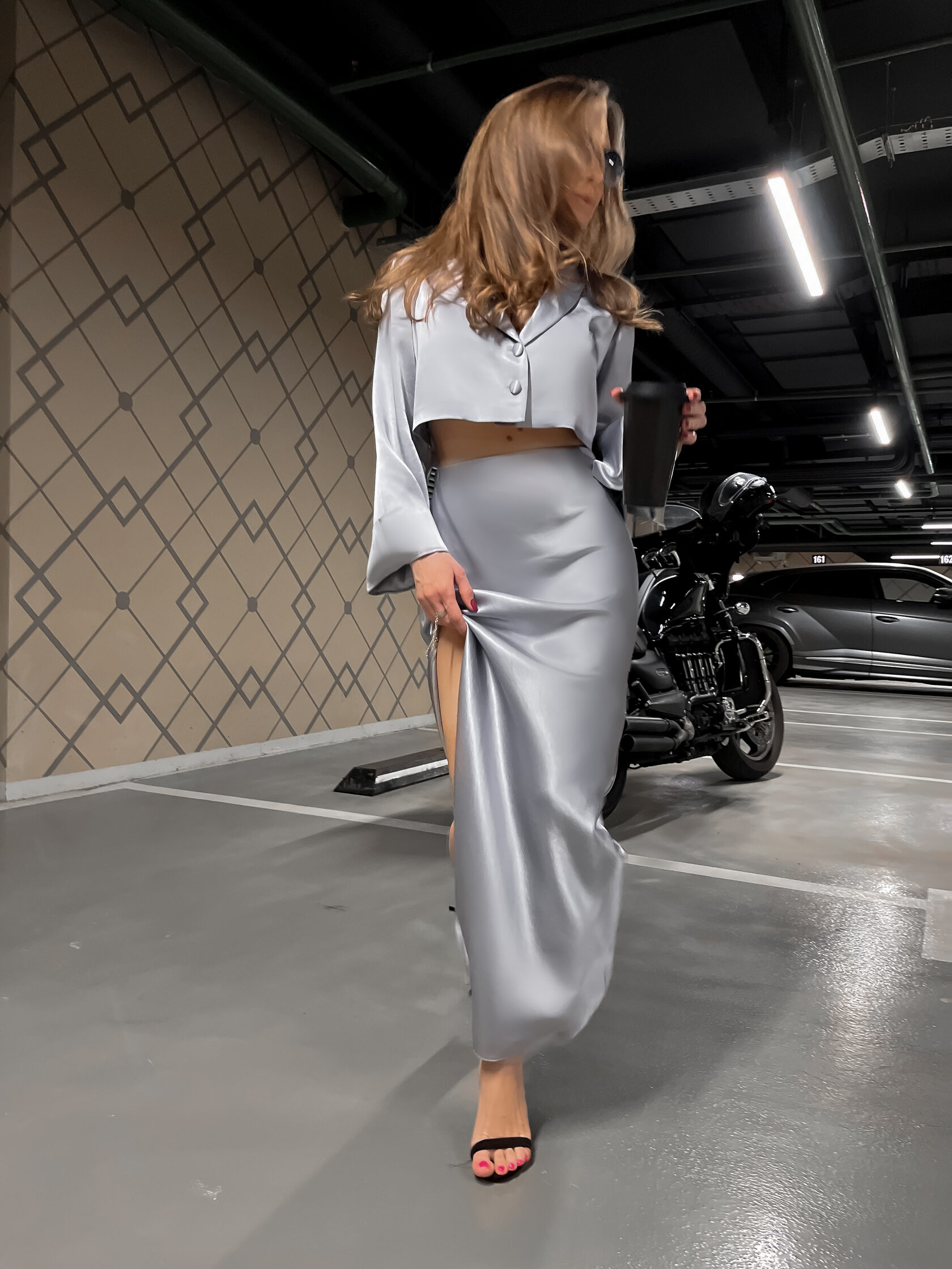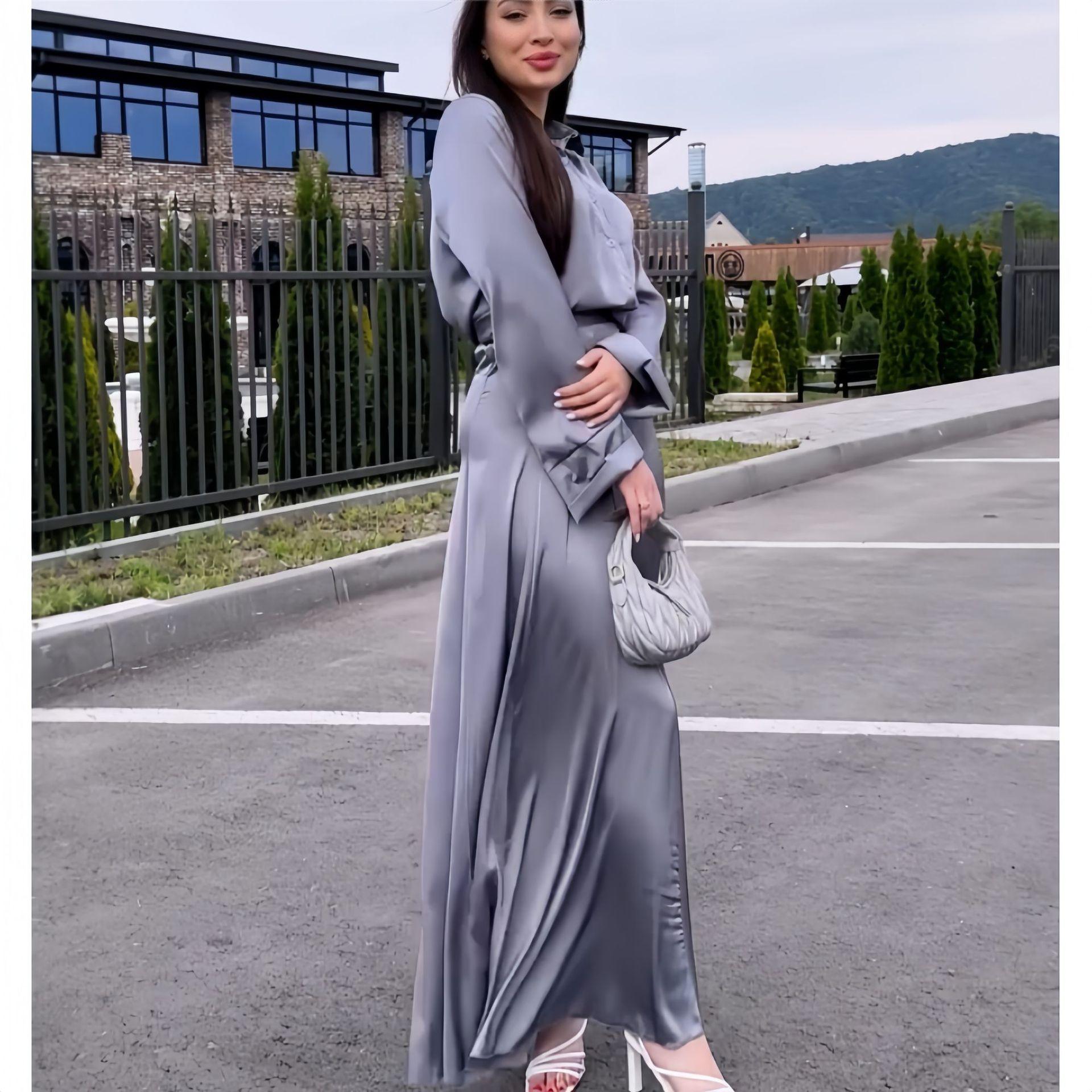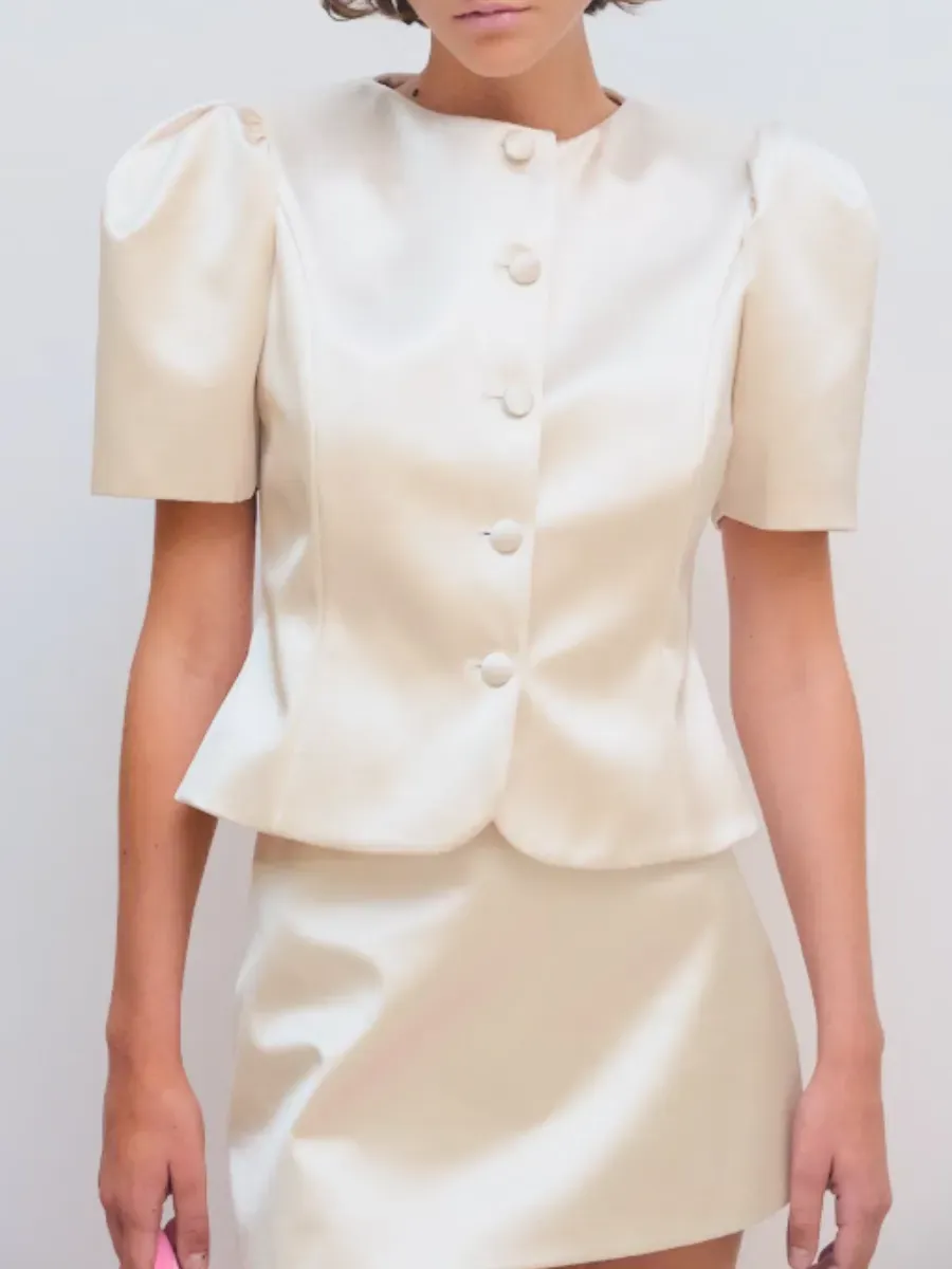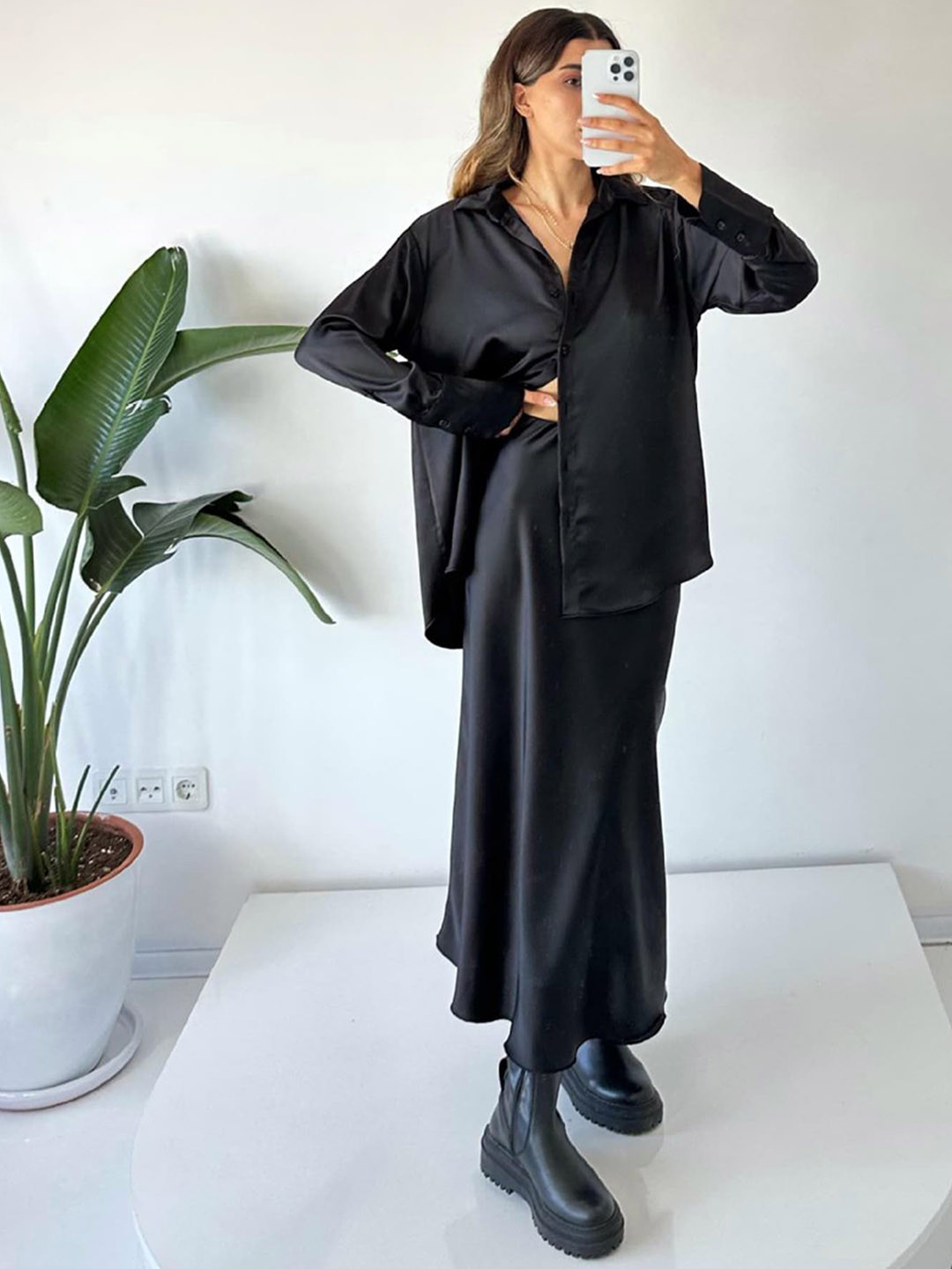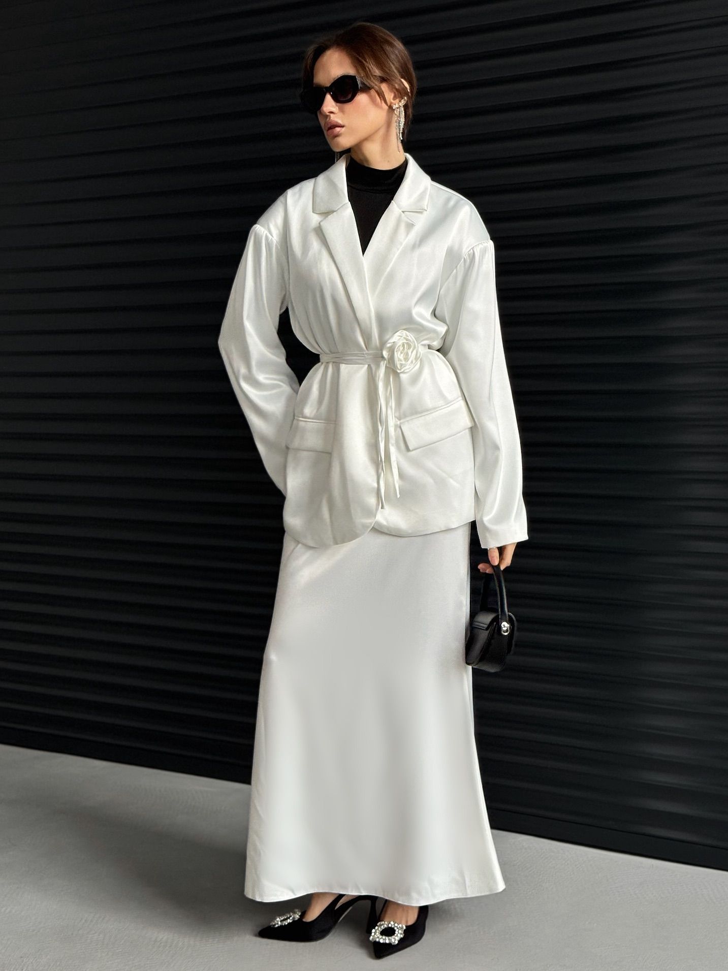 Атласный костюм с юбкой 90 фотографий