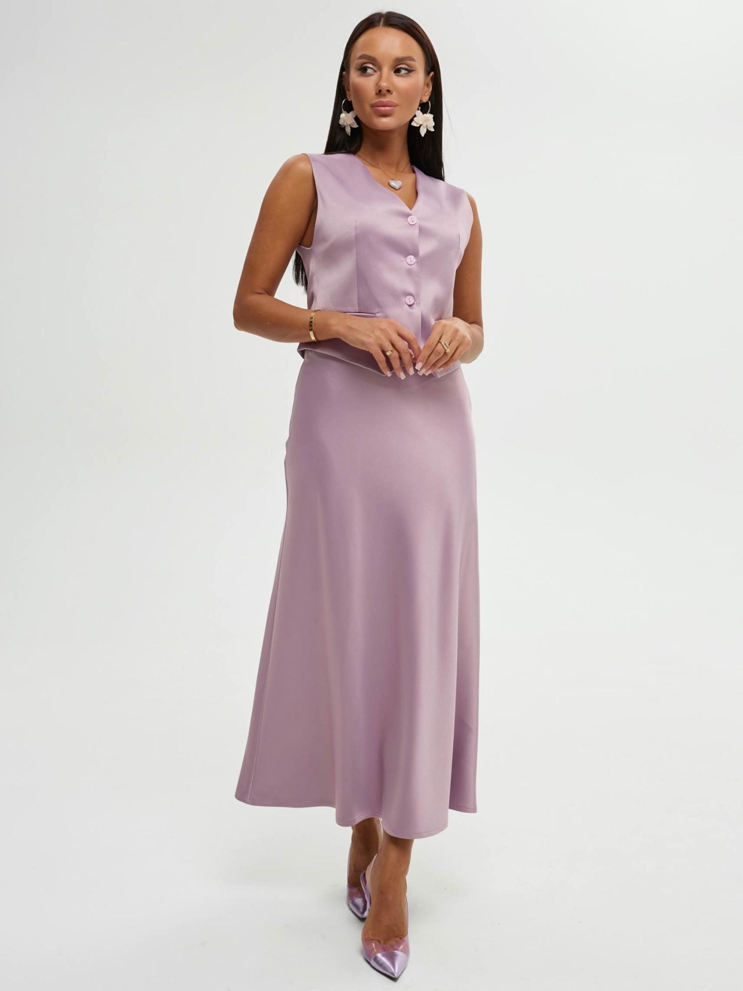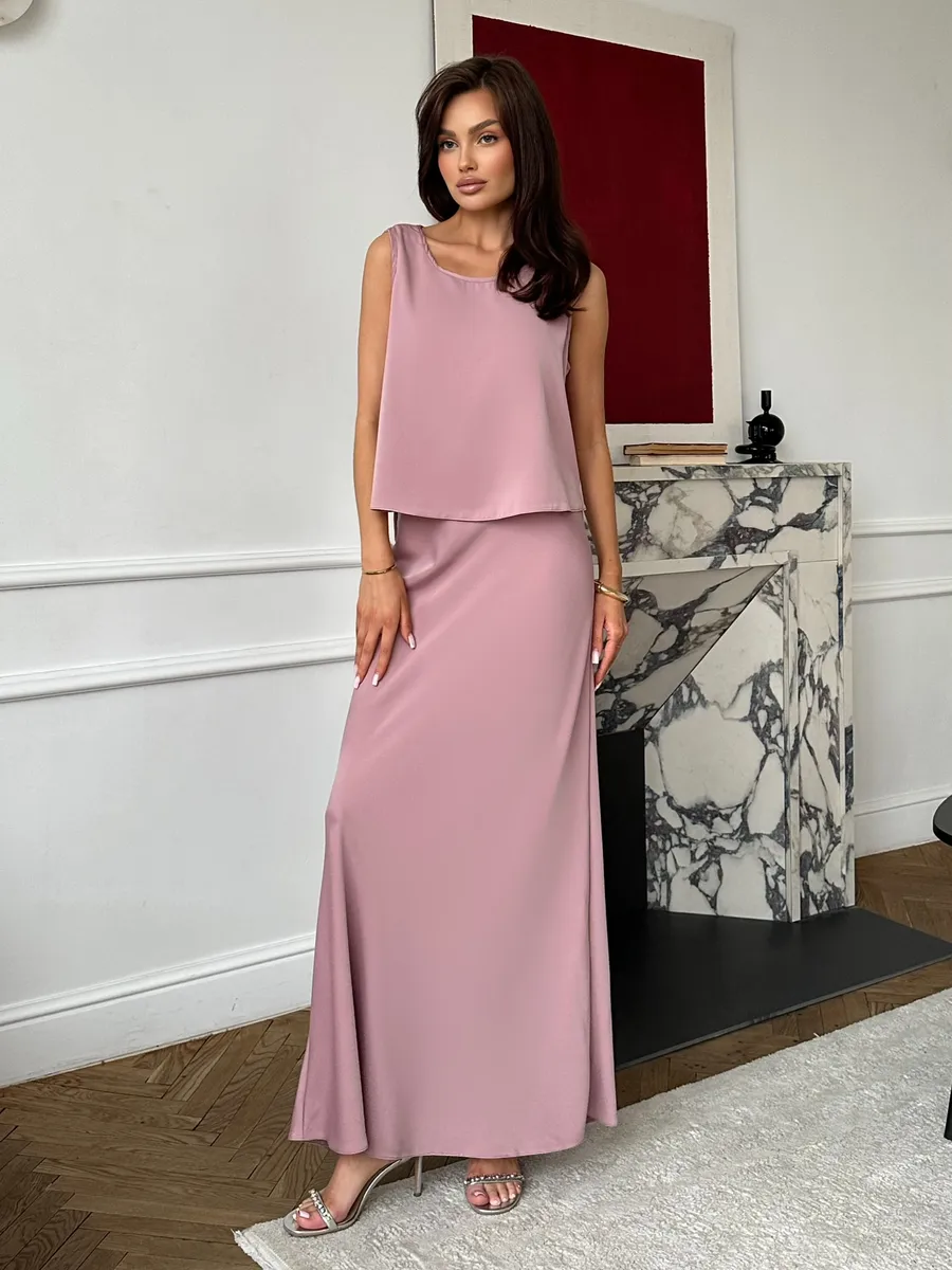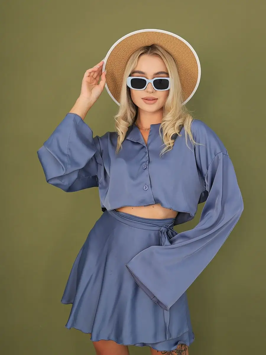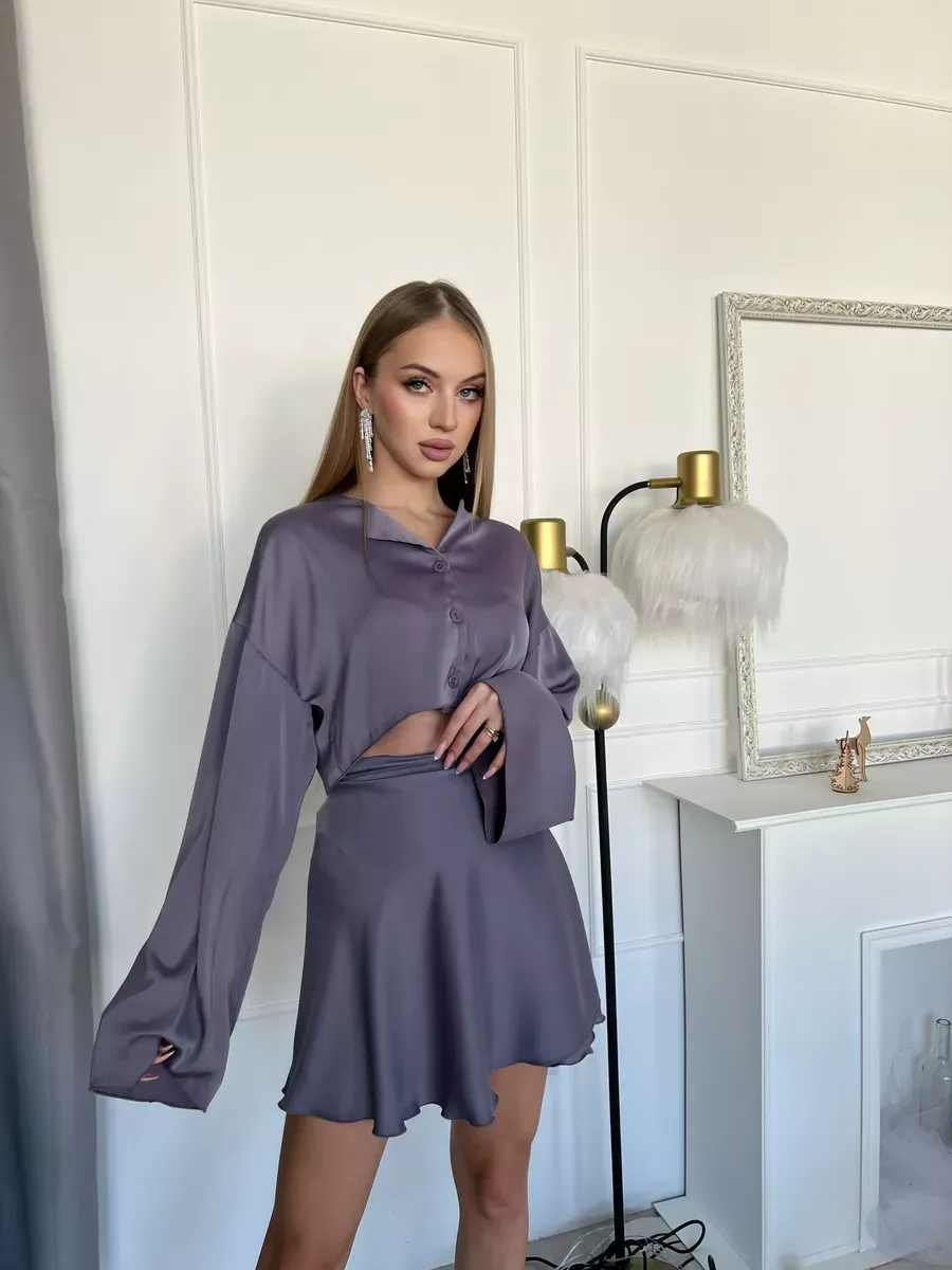 Атласный костюм с юбкой