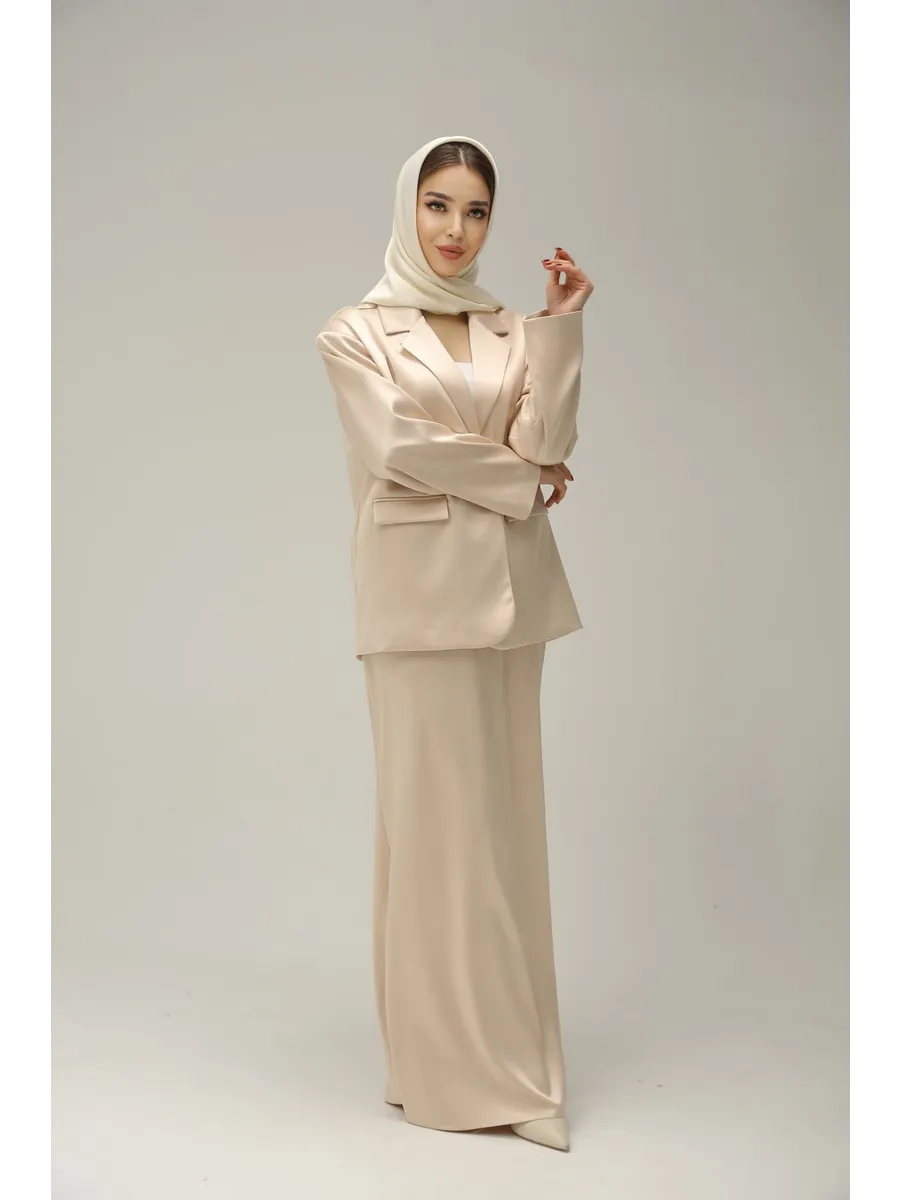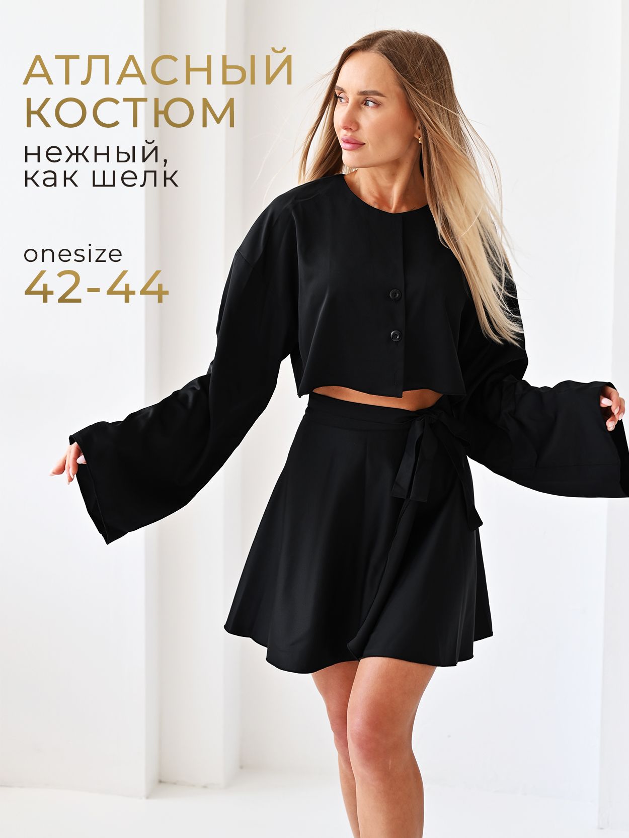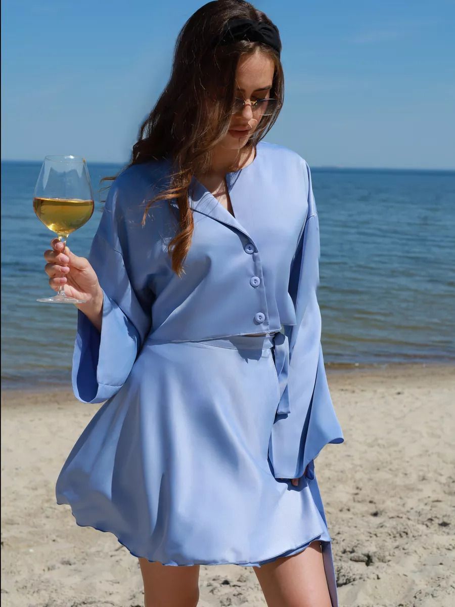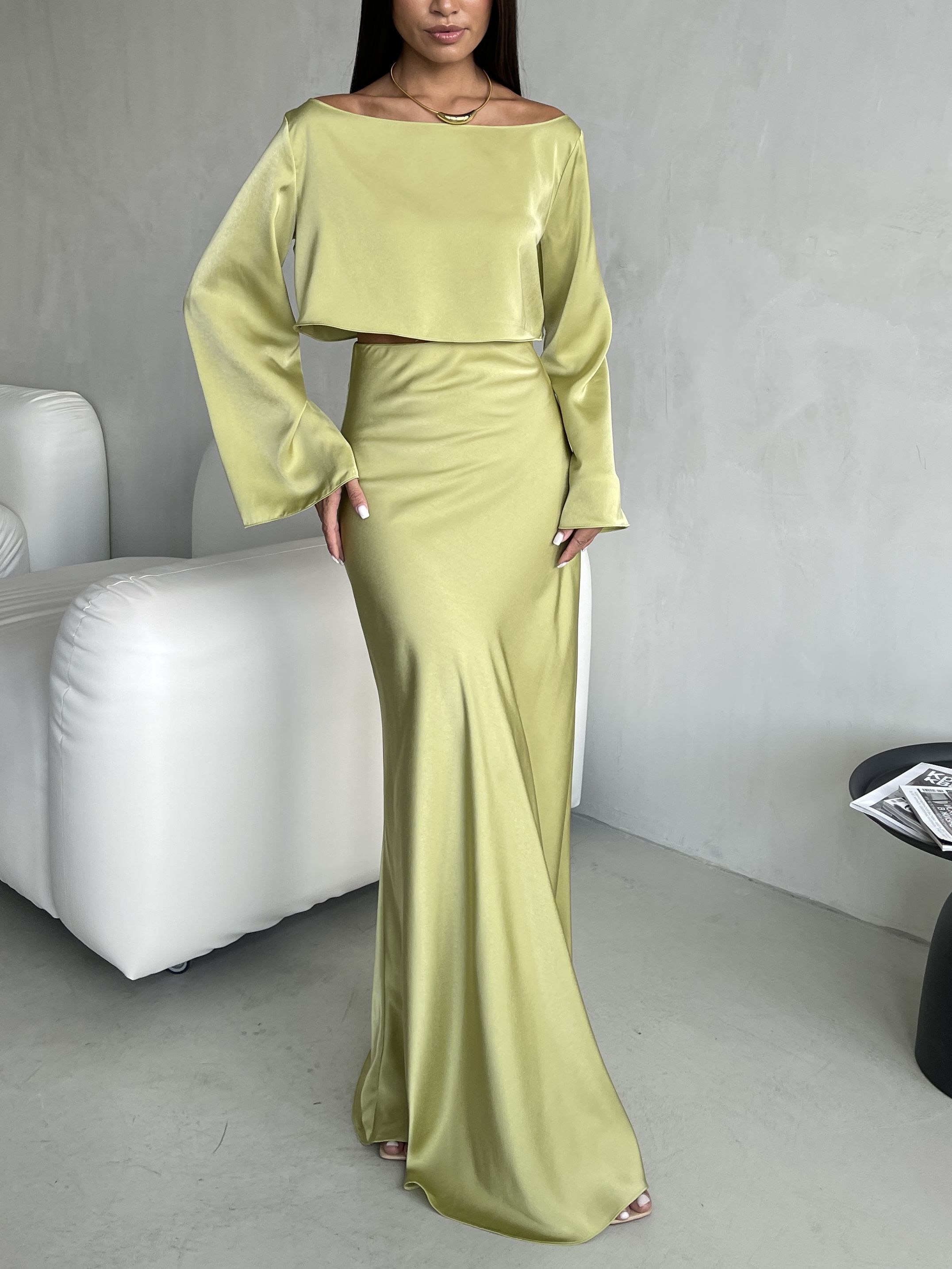 Атласный костюм с юбкой