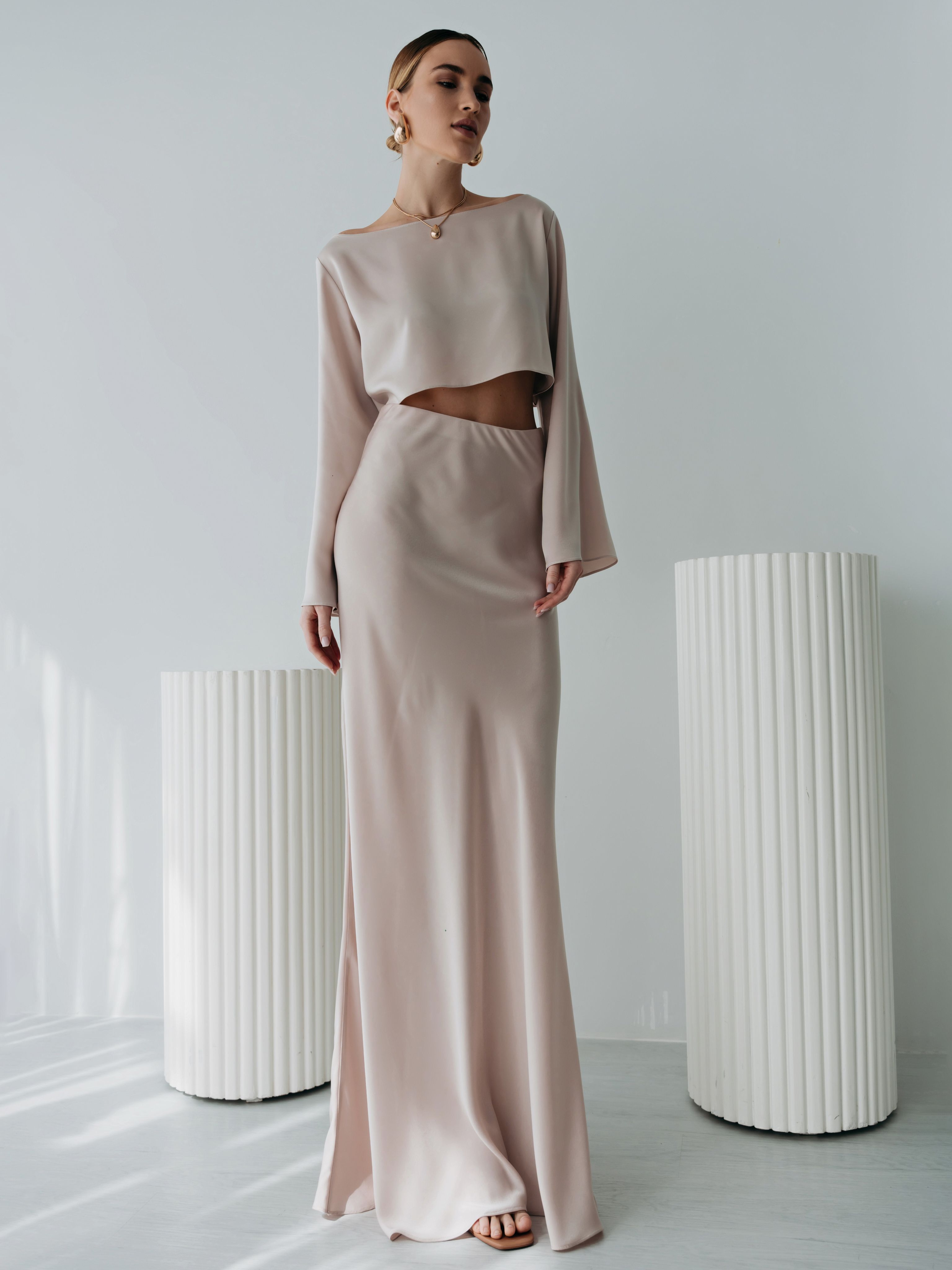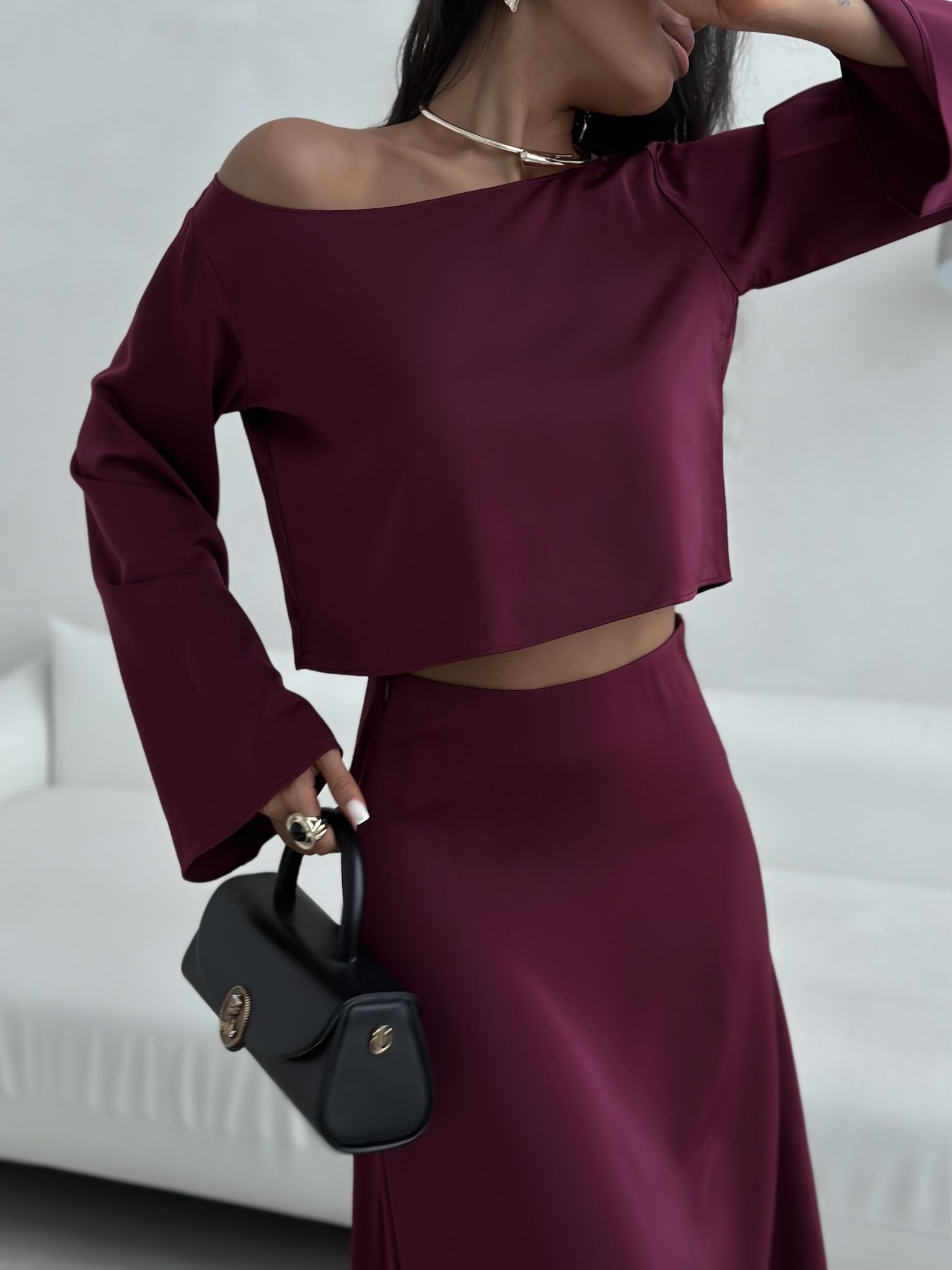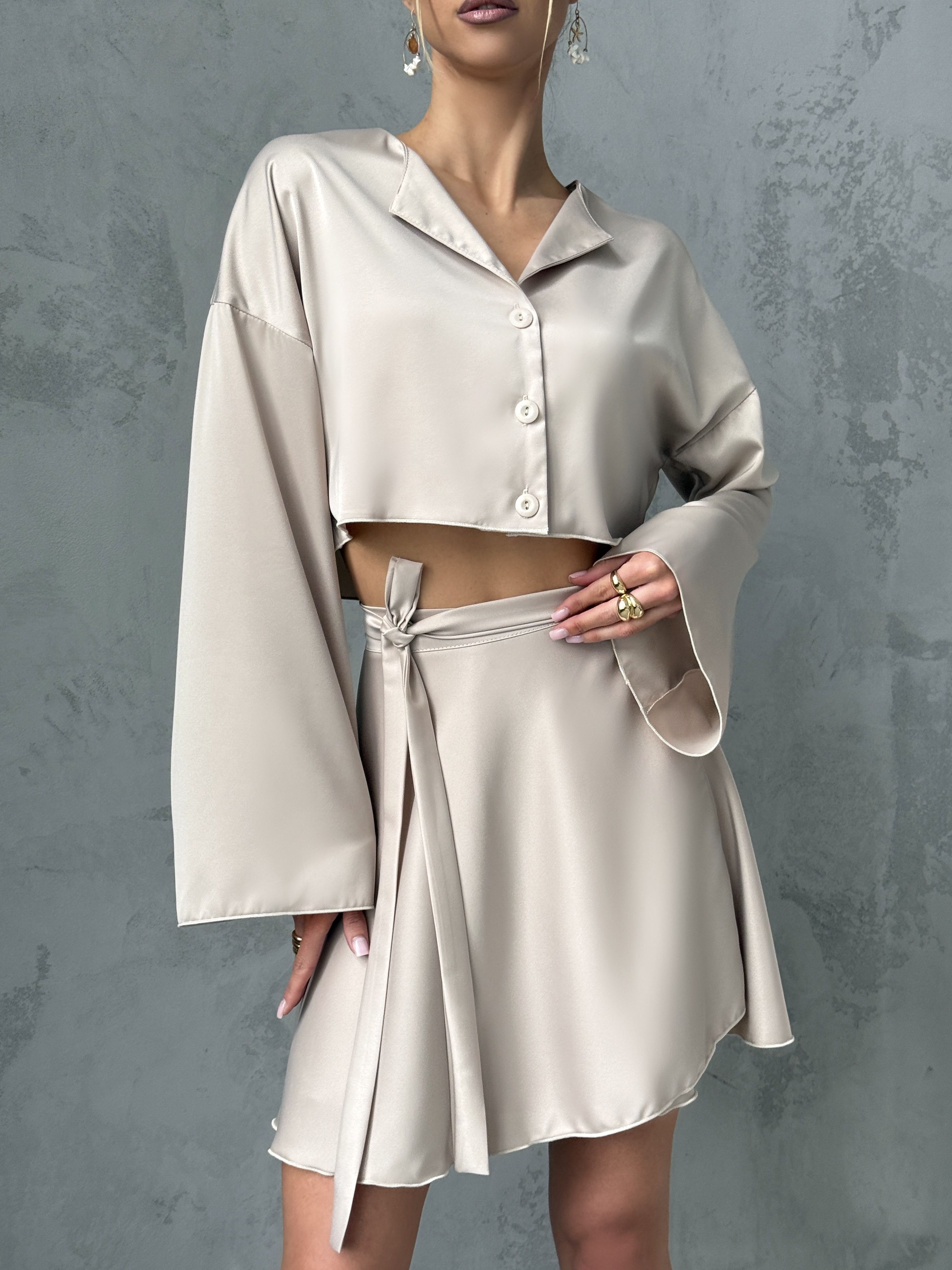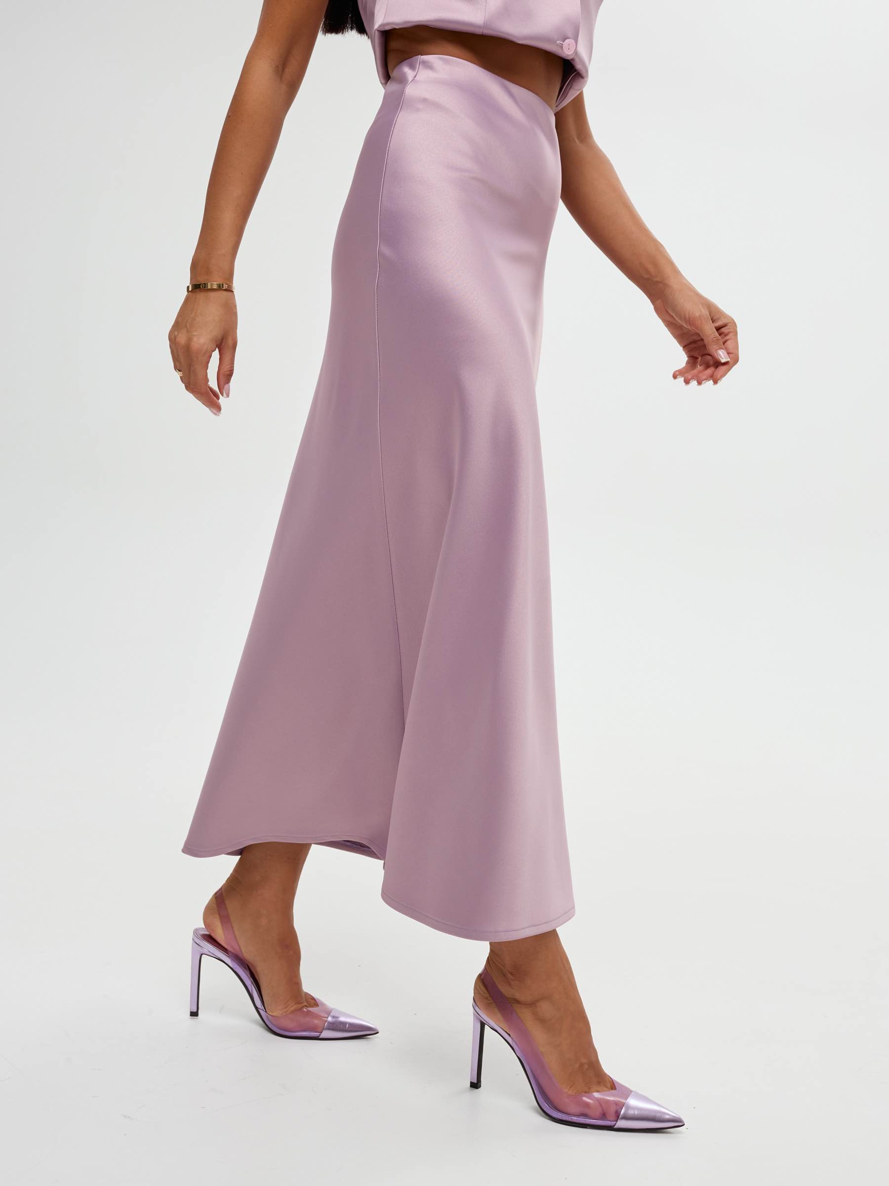Атласный костюм с юбкой