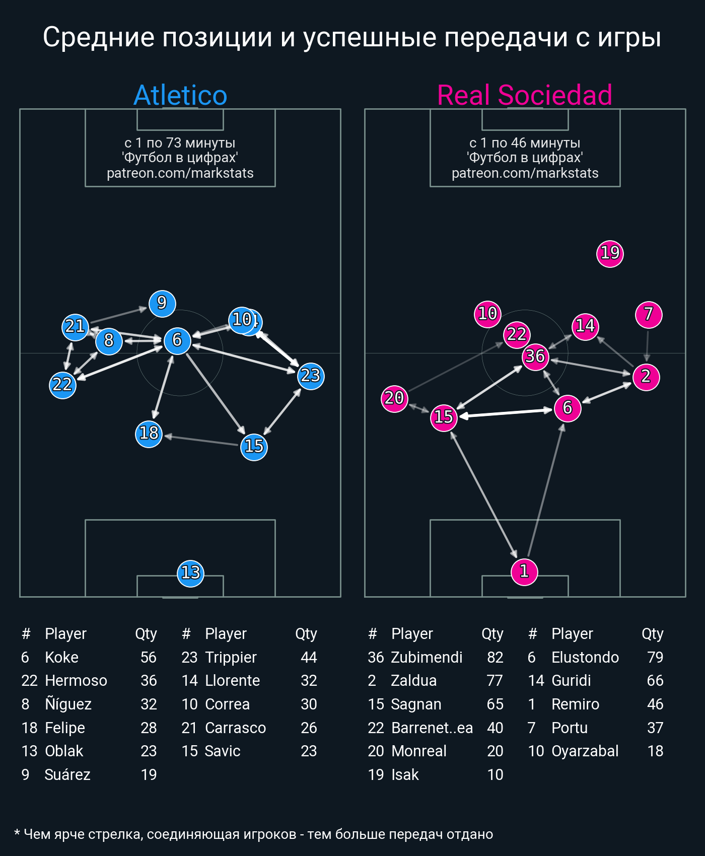 Футбол в цифрахСтатистика матча Atletico - Real Sociedad