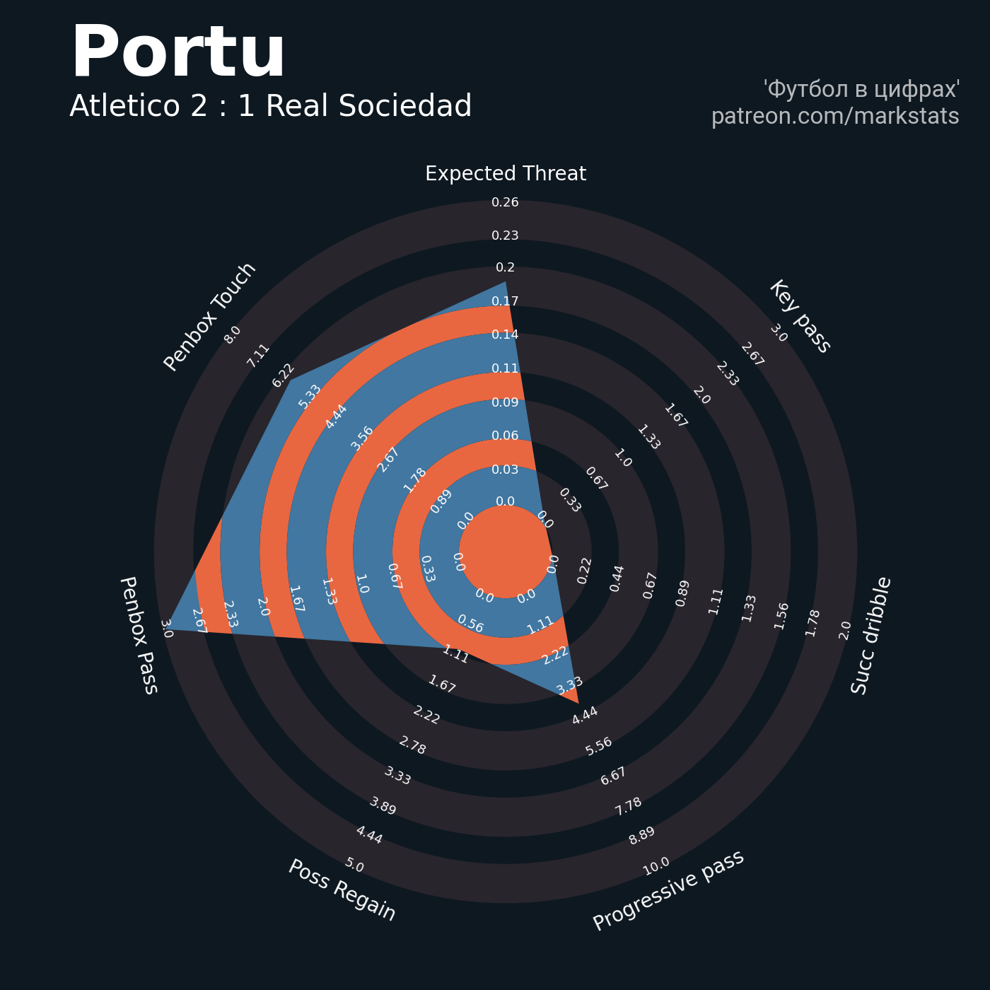 ▪ xThreat без учета угловых: 1.12 - 1.26