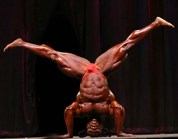 Даже бодибилдеры во время произвольных программ иногда демонстрируют выдающиеся гибкость и координацию.