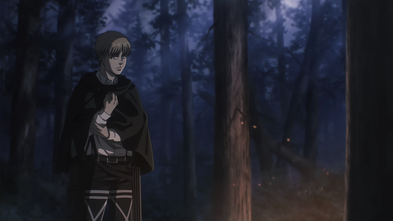 آرمین در اینجا مستقیماً به ارن صحبت میکنه. جملهای که میگه ‘اما هنوز، اگر بتونیم چیزی رو پشت سر بذاریم وقتی به جلو میریم…’ خیلی شبیه ایدهایه که خاطرات ارن توسط تیر، به شکل خاکسترهای ققنوس، ترک میشن، تصویری که در OPها و EDهای مختلف تکرار شده.