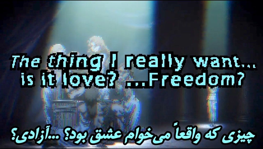 «چیزی که واقعاً میخوام… عشقِ؟ …آزادی؟ یا...» یمیر نمیدونه که عشق میخواد یا آزادی، ولی به یه جواب سوم و واقعیتر اشاره میکنه.