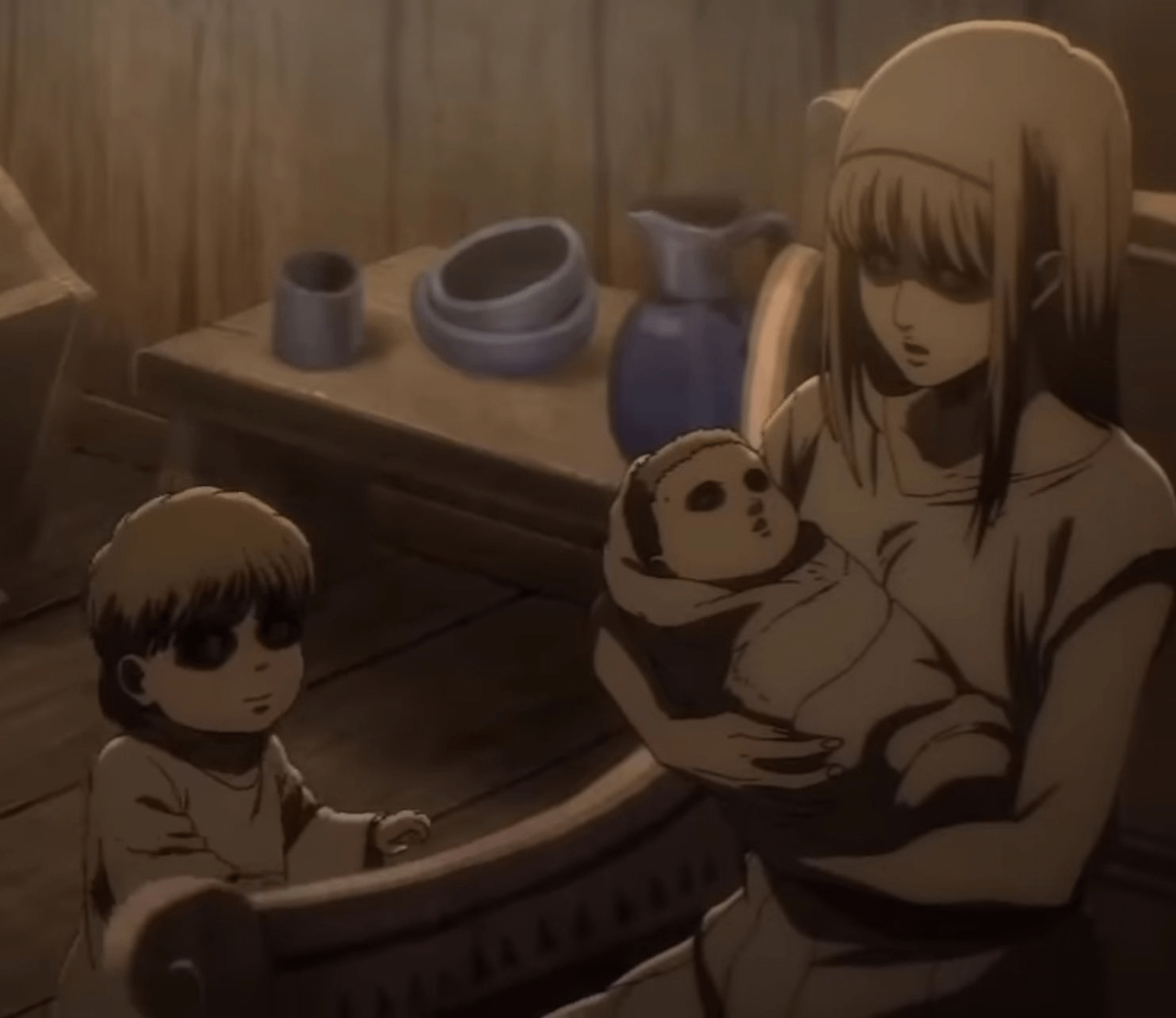اون واقعاً میخواد به دنیا زندگی بده. برای همین اجازه میده شاه فریتز ازش بچهدار بشه و تایتانها رو به شکل فریتز خلق میکنه. ولی این کار رو از روی میل واقعی خودش انجام نمیده؛ به همین خاطر همیشه حس میکنه گم شده و راضی نیست، و چشماش هم همیشه بیروح و تاریک به نظر میرسن.