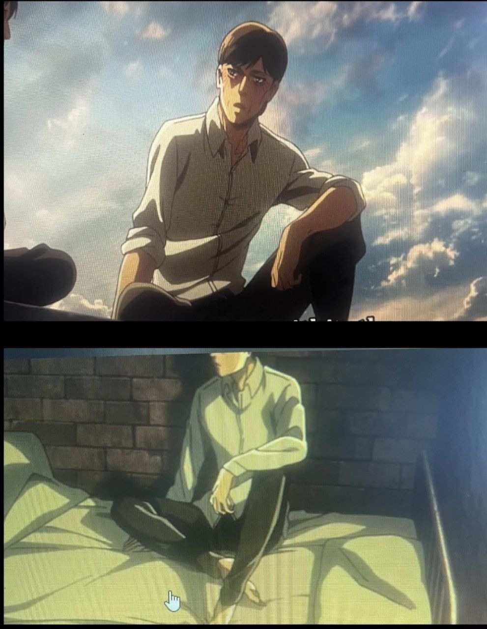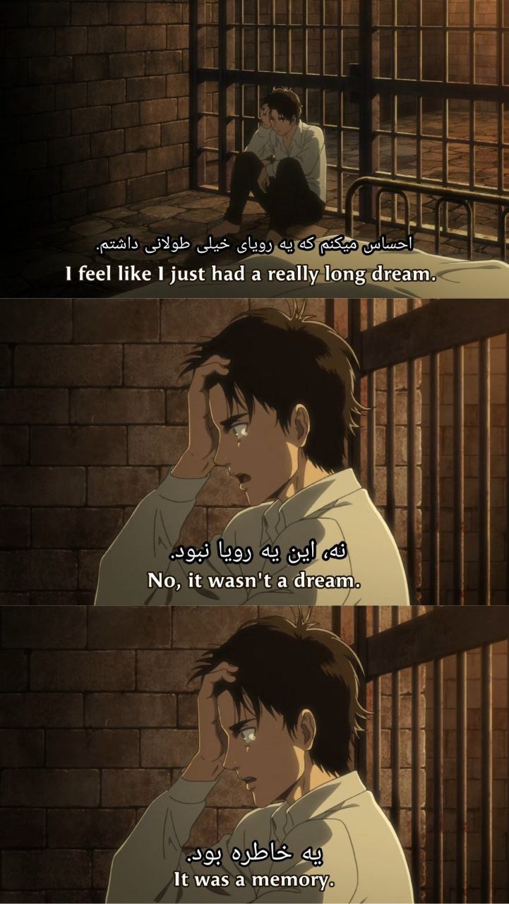 این نشون میده که خوابیدن ارن تو اون سکانس چقدر اهمیت داره چون بهتون گفتیم اینجا جایی بود که ارن به تایم لاین ۲ منتقل شد
