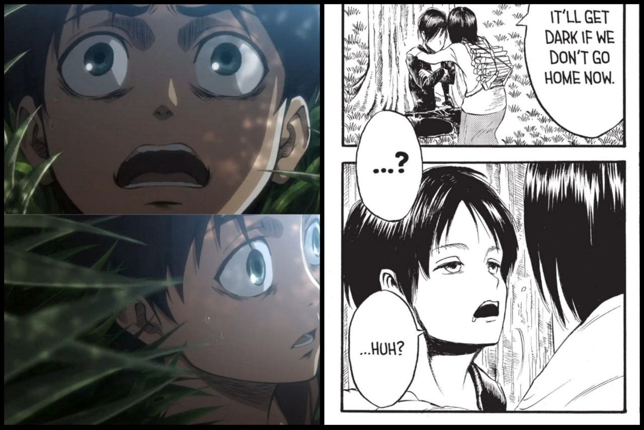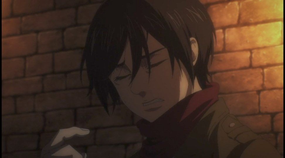 میکاسا هنگامی که نبرد با ارن هست سردرد میگیره اولین خاطره ای که به یاد میاره خوابیدن ارن به صورت نشسته هست.
