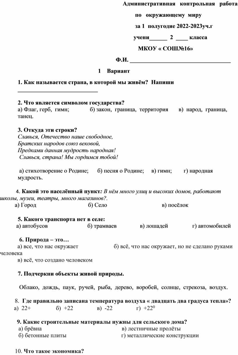 Аттестационная работа по окружающему миру 1 класс 72 фотографий