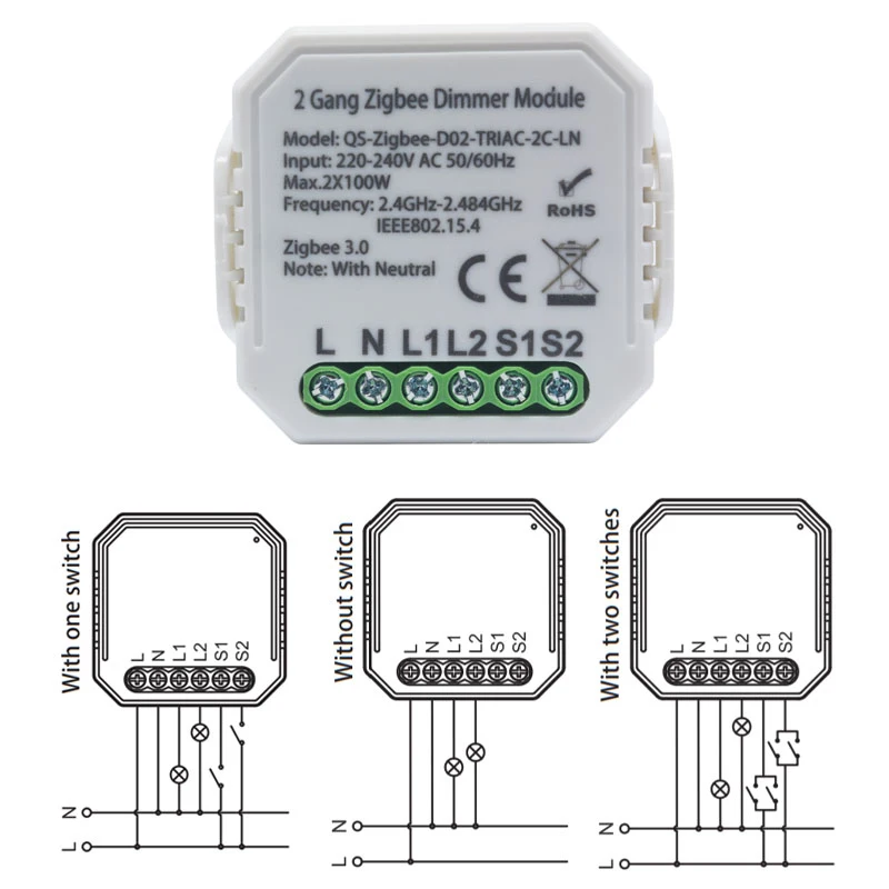 «Aubess Tuya Zigbee Smart Dimmer Switch Module With Neutral 1 2 Gang Wireless Remote Control Compatible With Alexa Google Home» по лучшей цене на рынке! Всего за 5$ (475рублей)