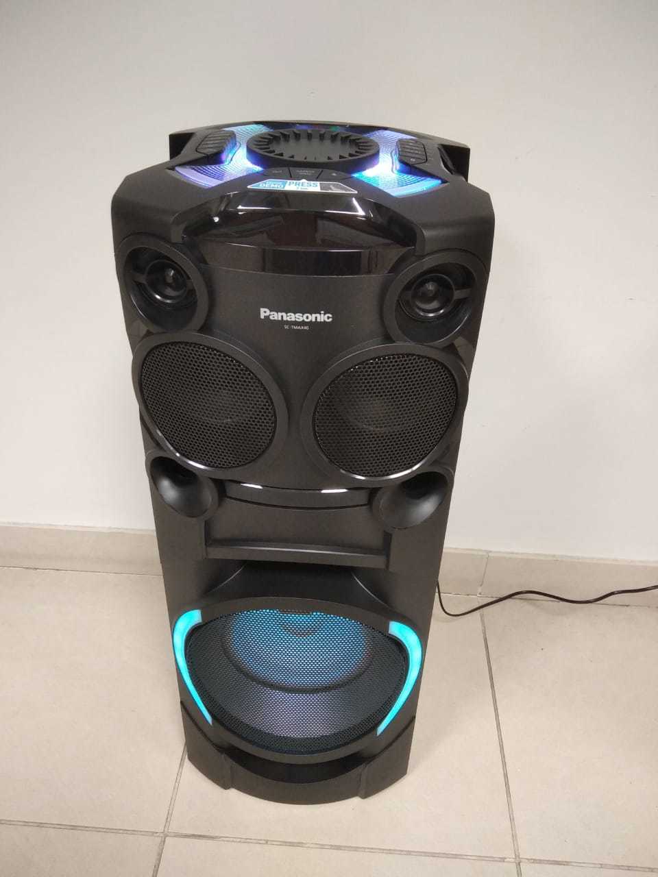 Explore the Panasonic SC -TMAX40GWK - Audio Speakers System - Powerful 1200 W (RMS 30%) output with a total of five speakers including a 20 cm super woofer with dual drive and equipped with AIRQUAKE BASS to enhance deeper bass . TMAX40 also comes equipped with features to meet all your party needs, such as DJ Play, Full Karaoke and MAX Dance Illumination .