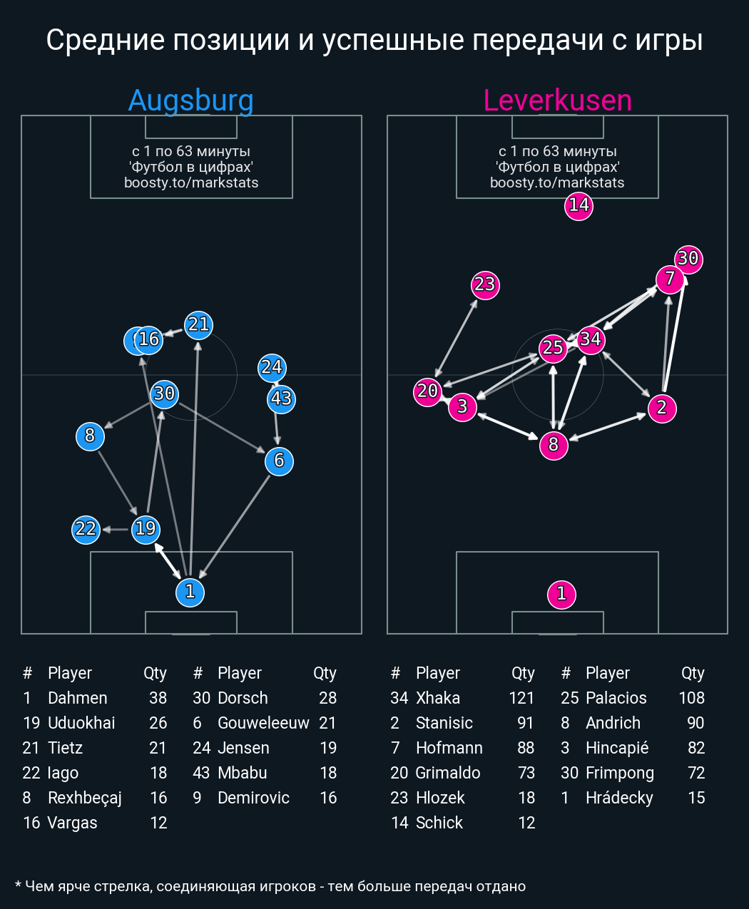 58 успешных передач из 76 попыток (4 под удар, 5 с продвижением, 23 на трети соперника)
