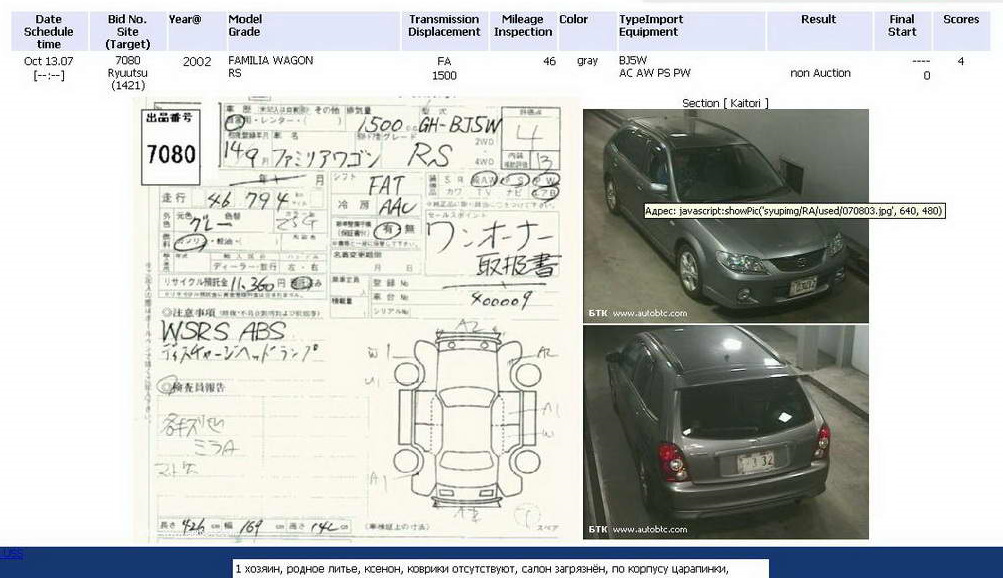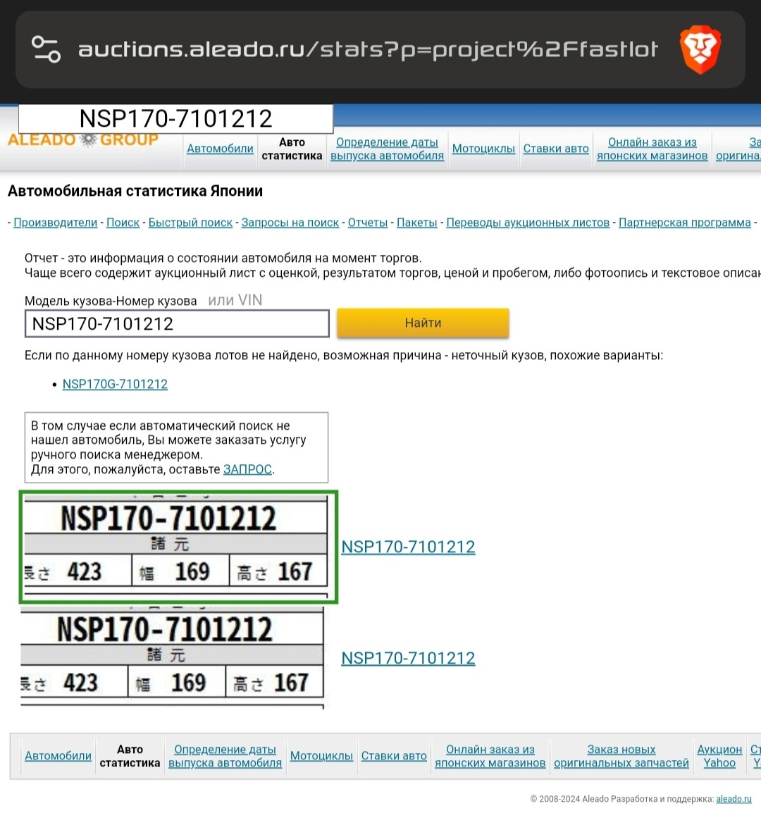 Аукционный номера автомобиля