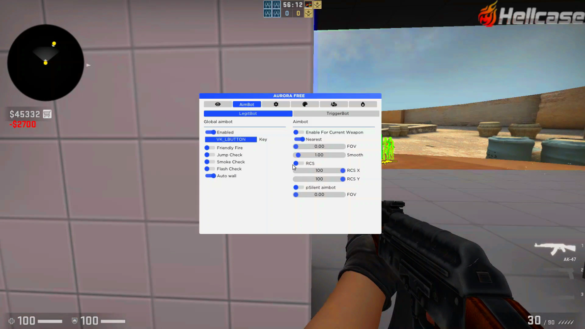 Crack Aurora Private — взломанный чит для CS: GO с удобным меню и интересными функциями.
