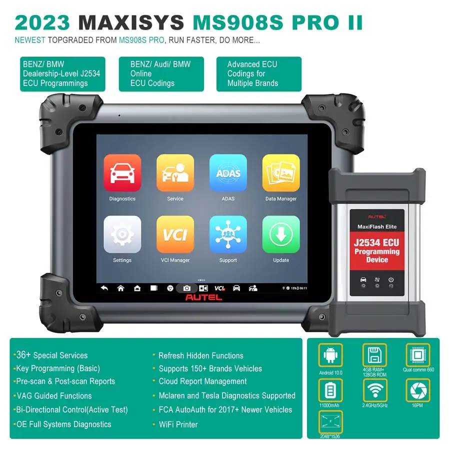 LwvQTxByHere you can buy Autel MaxiSys MS908S Pro II Auto Full System Diagnostic Tool with J2534 ECU Program MS908S Pro ECU Coding 36+ Services with free delivery to your post office.