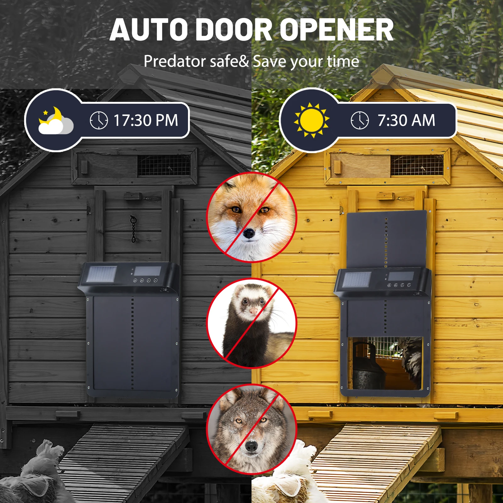 nhQCpNjmHere you can buy Automatic Chicken Coop Door Solar Powered, Electric Chicken Door Opener with Timer Light Sensor and Remote Control, IP64 Waterpr with free delivery to your post office.