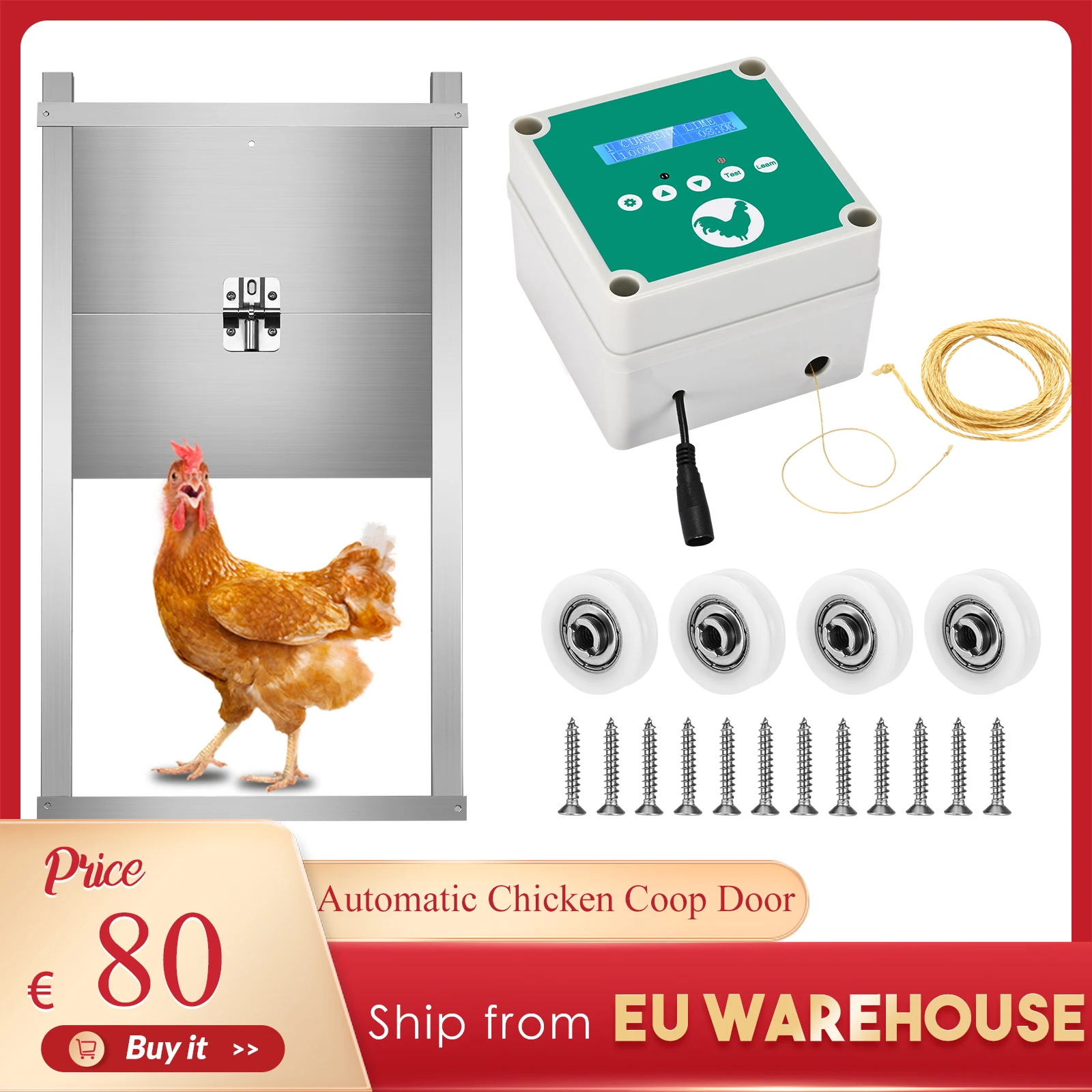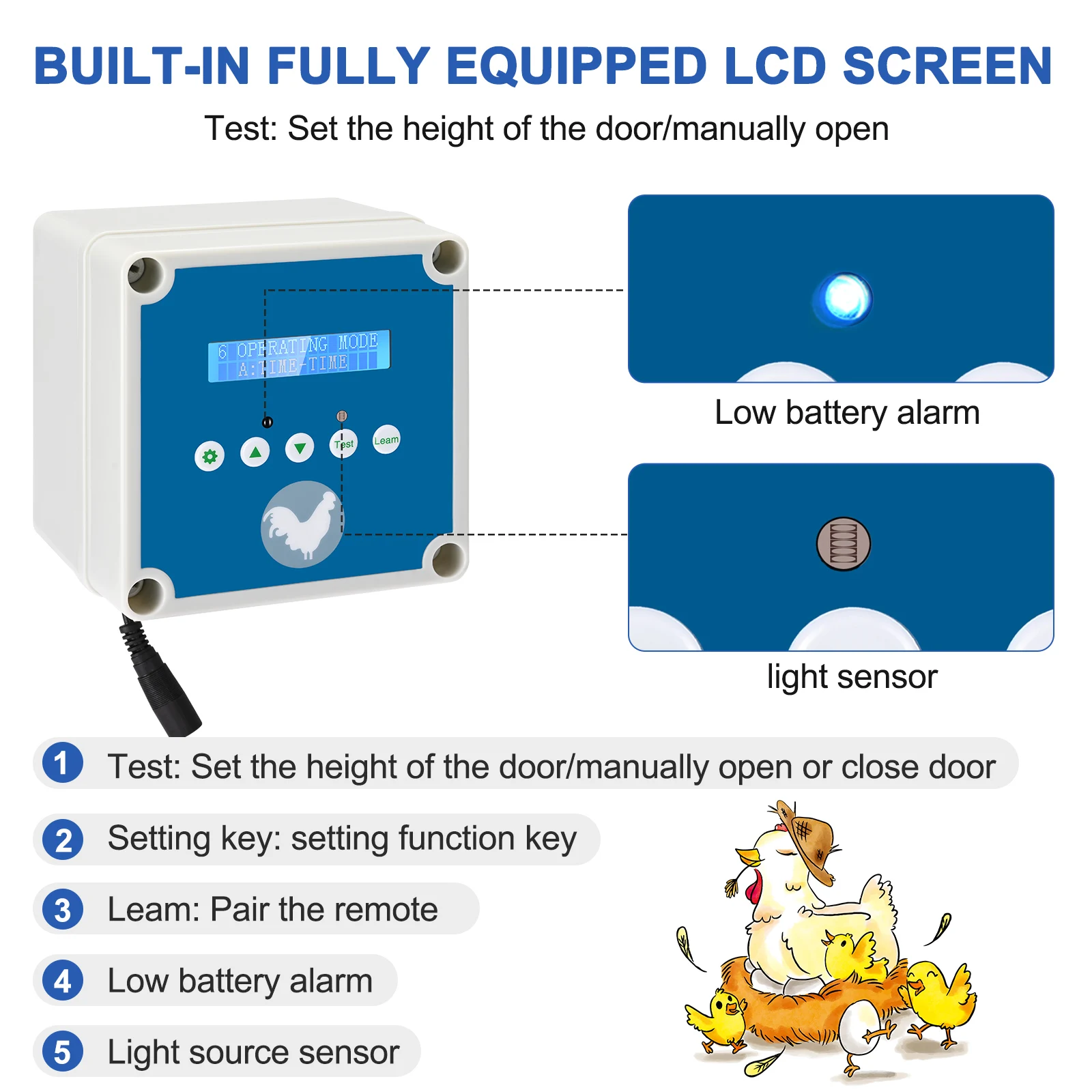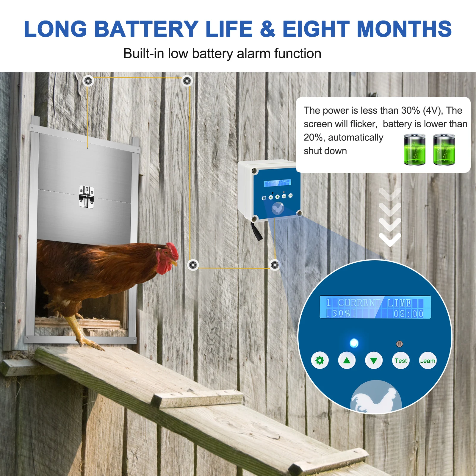 Automatic Chicken Coop Door with Timer Light Sensor LCD Screen Low Battery Alarm Function 4 Setting Modes 2 Remote Controls - Купить с бесплатной доставкой