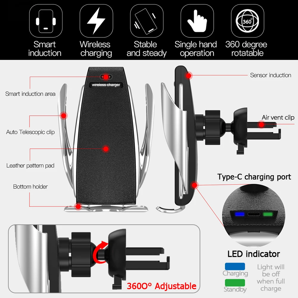 Automatic Clamping Car QI Wireless Charger Wireless Car Charger 360 Degree Rotation Car Mount Fast Charger Automatic Charging - Купить с бесплатной доставкой