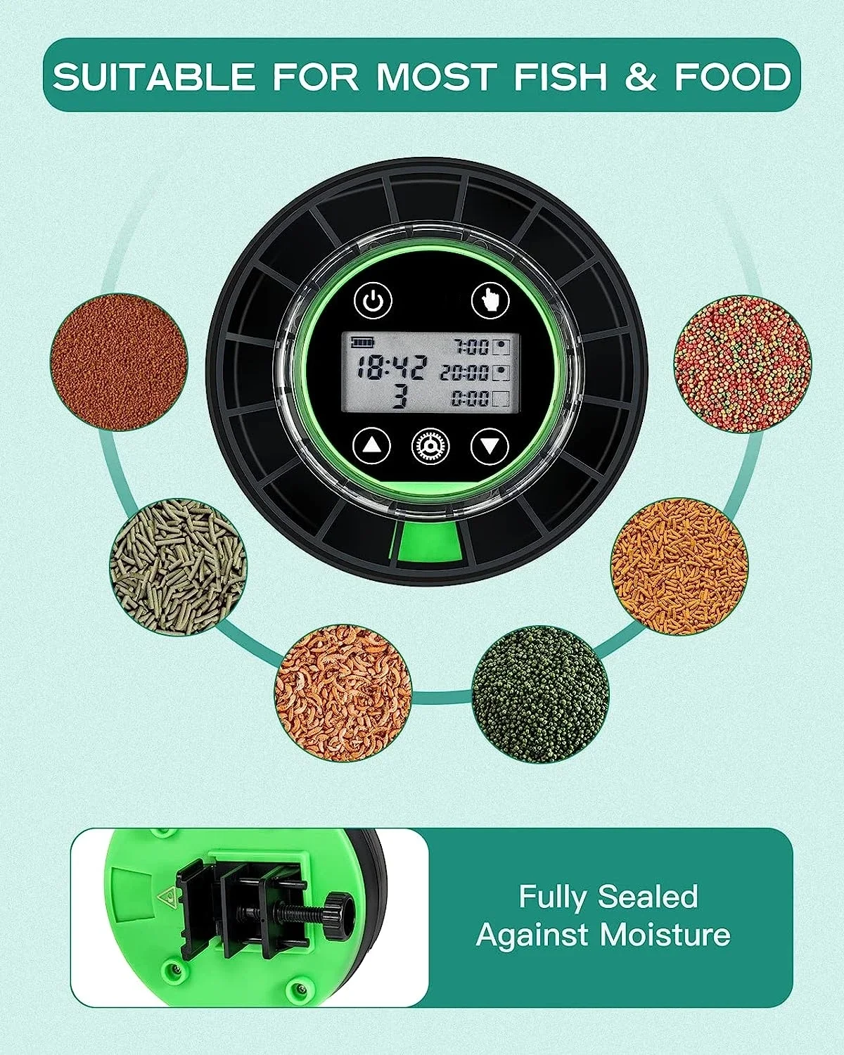 ahNzVpQlHere you can buy Automatic Fish Feeder for Aquarium, Automatic Food Dispenser with Timer, Rechargeable Timer Feeder, with USB Cable, LCD Display with free delivery to your post office.