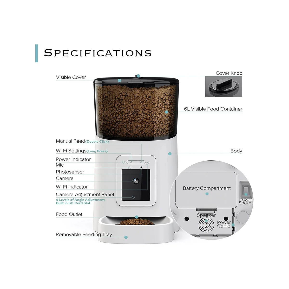 Automatic WiFi 6L Smart Pet Feeder / 1080P Camera for Cats & Dogs/Auto + Manual Food Dispenser/IOS Android Compatible - Купить с бесплатной доставкой