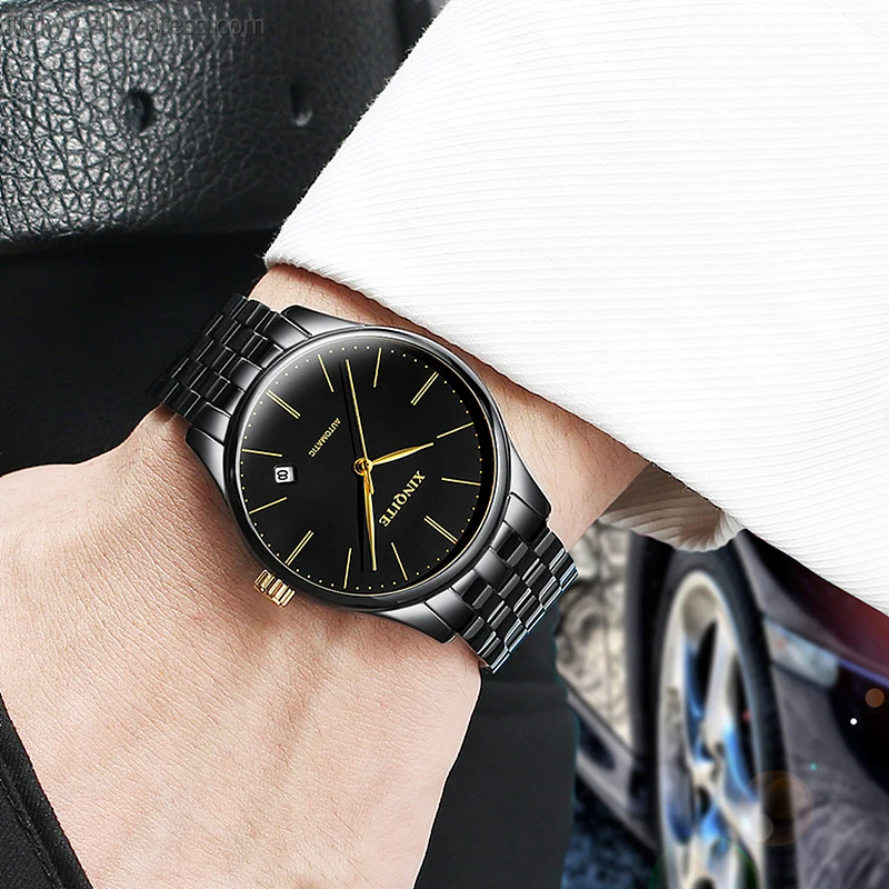 "Automatic mechanical self wind mens watch black stainless steel strap with push button hidden clasp watch casual wristwatch A230" * Buy Now Just For 55$