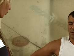 Amber Rayne saugt eine harte errichtet Schwanz und genießt Gesichtsbehandlungen