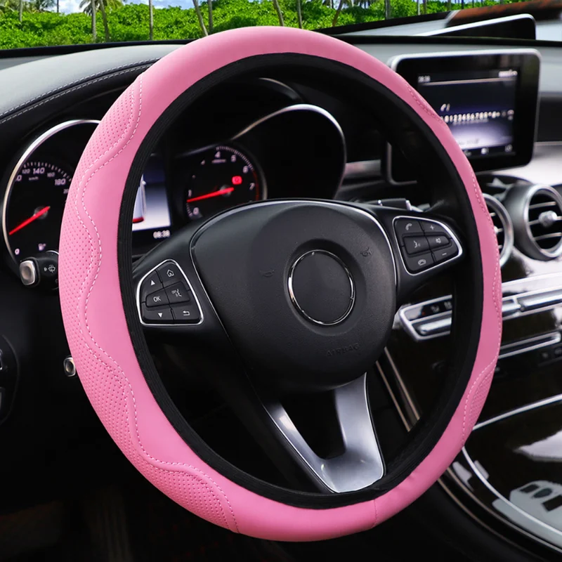 Automotive All Season Universal Steering Wheel Cover PU Leather Embossed Corrugated Elastic for Vehicles Auto Interior Accessory - Купить с бесплатной доставкой