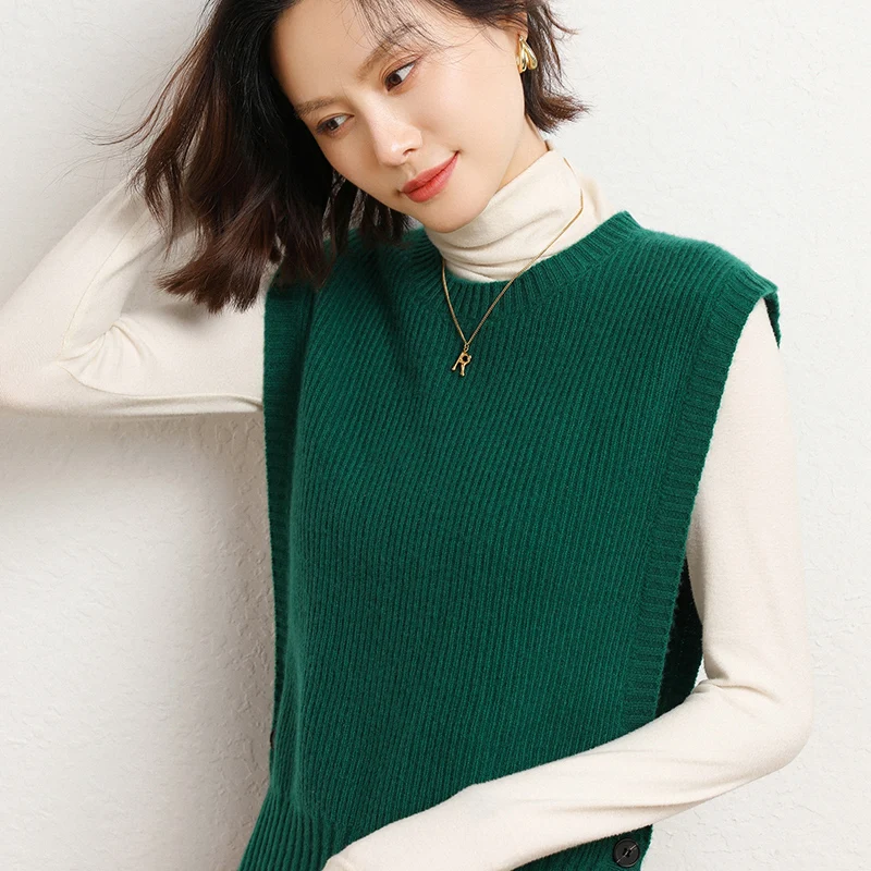 «Autumn And Winter New Ladies Round Neck Knitted Vest 100%Wool Loose Comfortable Design Sense Can Shoulder Sleeveless Sweater Top» по лучшей цене на рынке! Всего за 32$ (3040рублей)